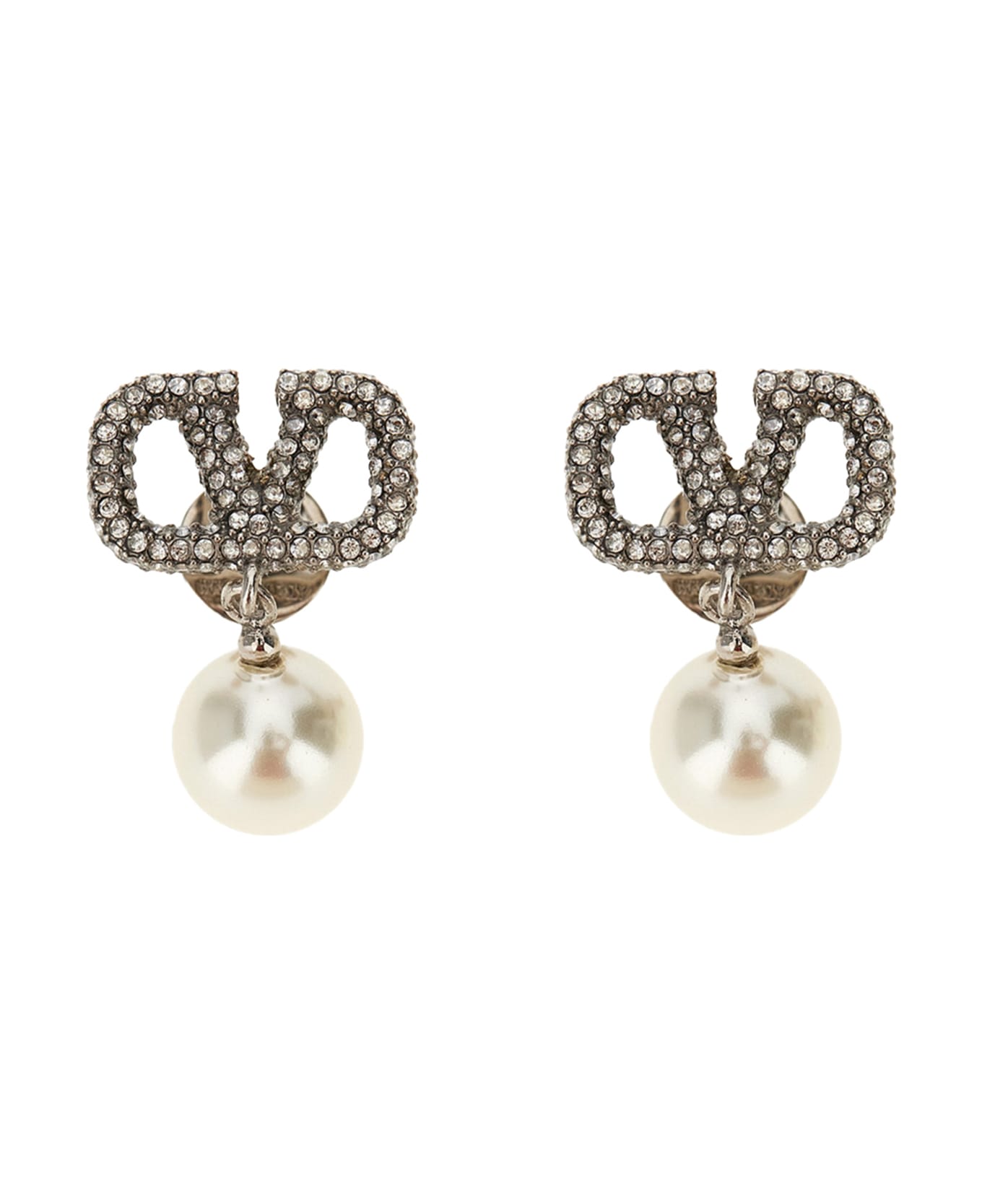 Vlogo Signature metal and crystal earrings with pearl pendant. ITEM CANNOT BE RETURNED Composition: 100% steel