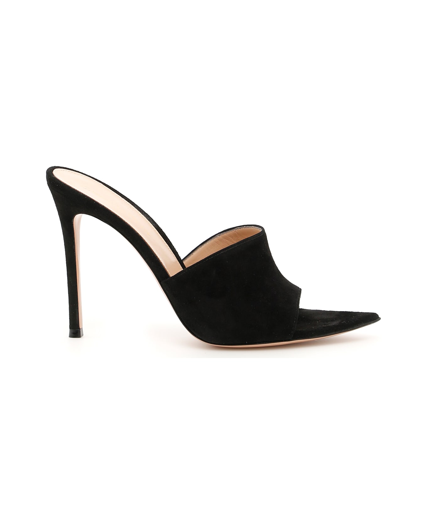 Gianvito Rossi suede mules with open toe. Leather lining, leather sole. Suede-covered stiletto heel.