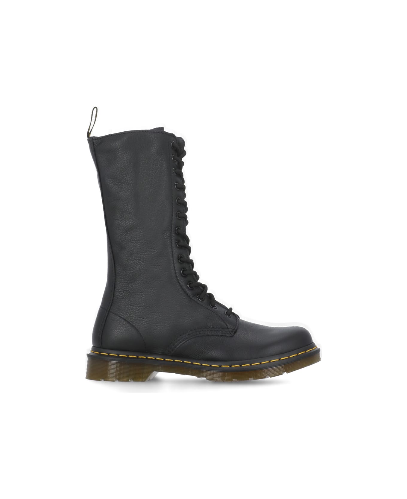 - Black Dr. Martens pebbled leather boots for woman - Round toe - Front laces fastening - Side zip fastening - Logoed tab at upper heel - Raised rubber sole (3 cm) Composition: 100% Cowhide Lining:, 75% Cowhide, 25% Fabric Sole:, 100% Rubber