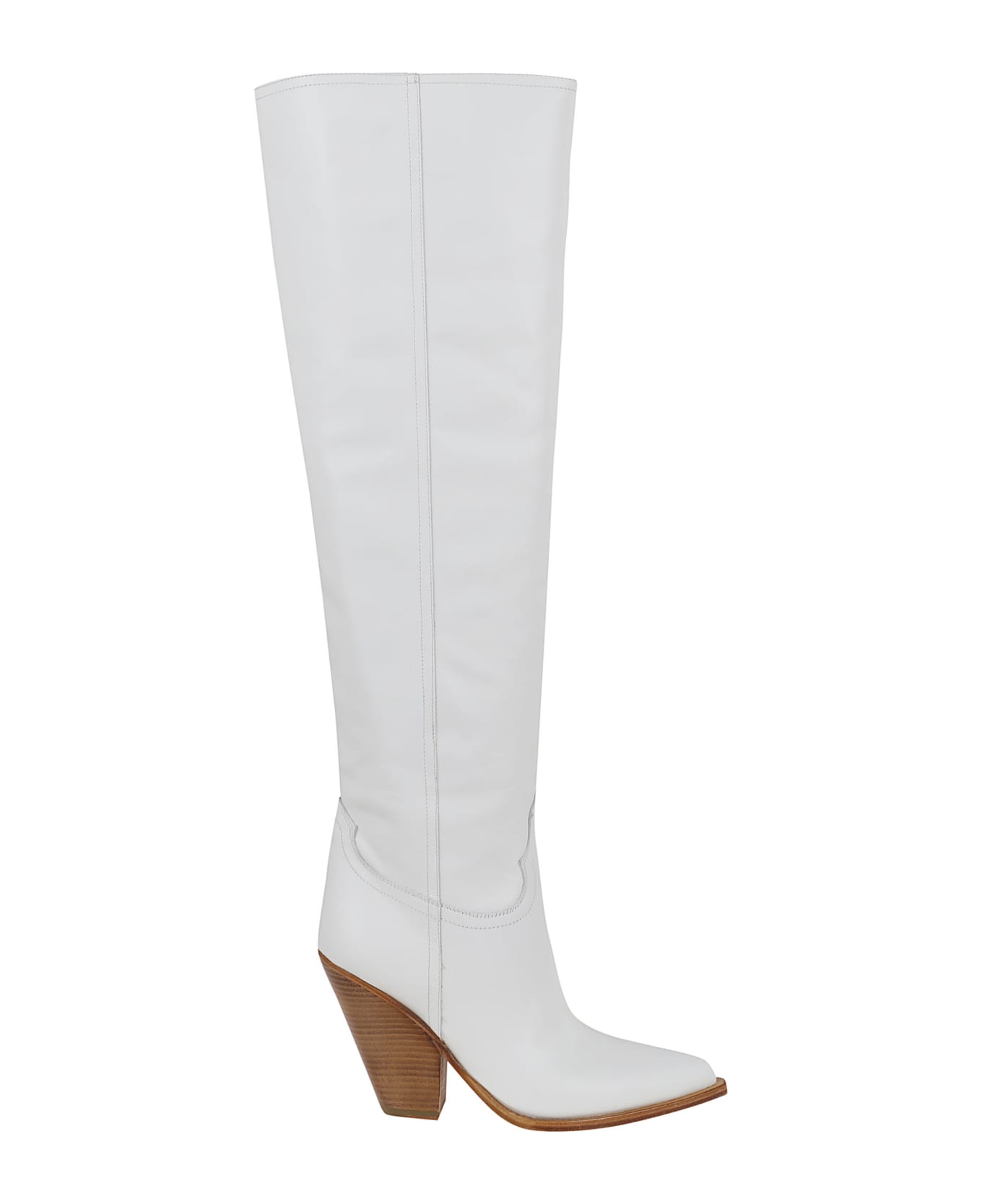 Acapulco leather boots BY SONORA. Pointed toe and contrasting square heel (9cm). Leg up to the knee.