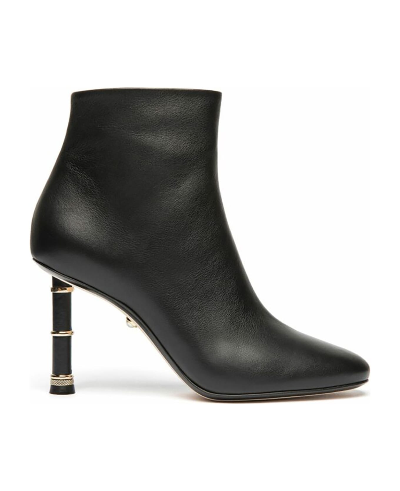 Nappa Black leather Diana Boots with metal accessories on heel, 9 cm heel height