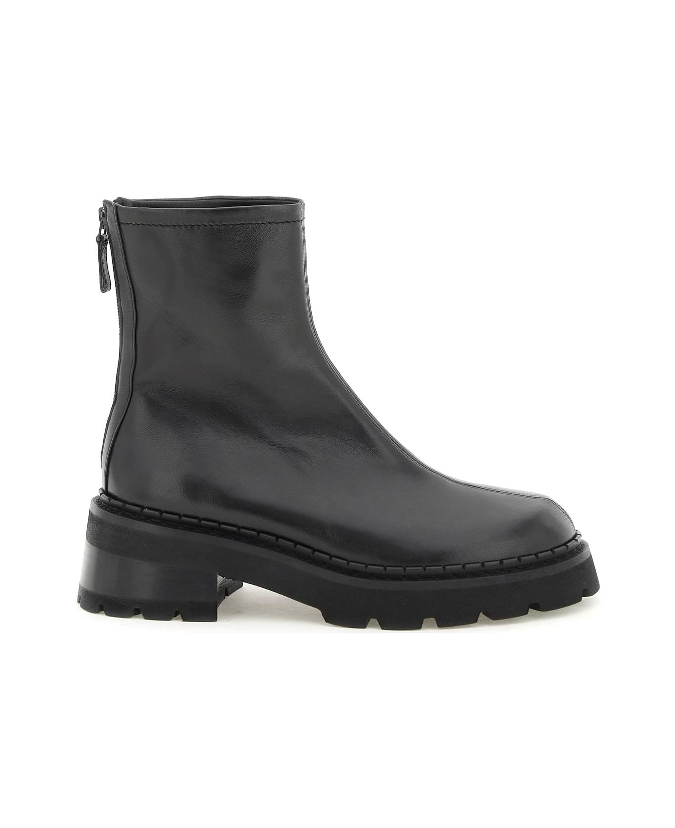 Alister ankle boots from By Far made of soft nappa leather with rear zippered closure, leather interior and rubber lug sole.
