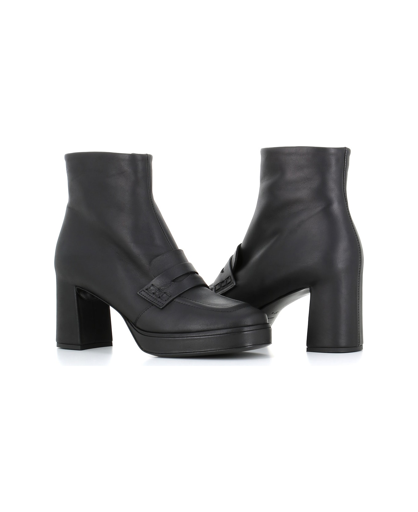 Black leather Ankle Boot by Del Carlo, featuring by a side zip closure and a mask with front flap. Lined interior. Leather sole. Heel: 8 cm Plateaux: 2,5 cm