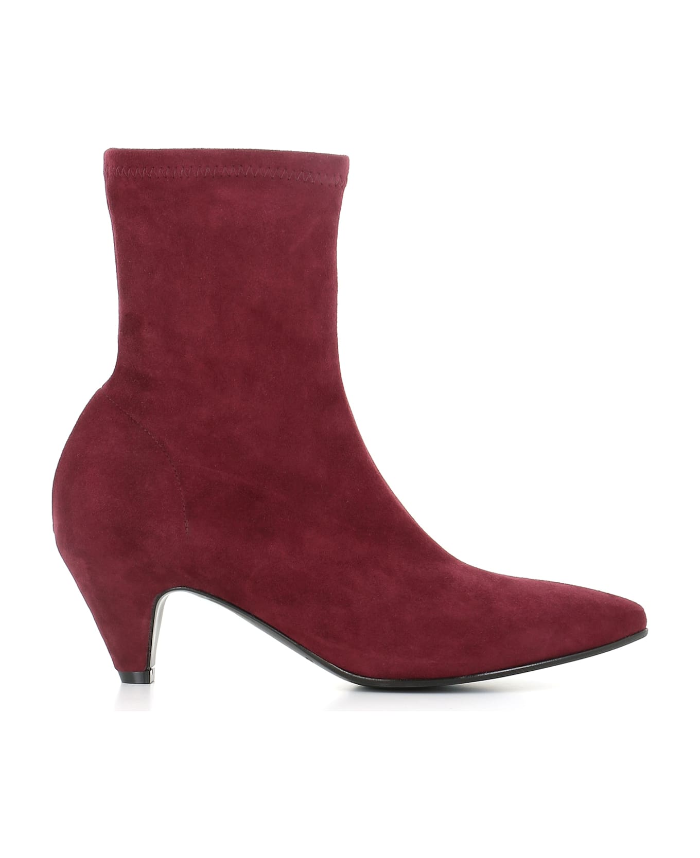 Burgundy suede women's ankle boot by Del Carlo, featuring by a V toe and stretch bootleg. Unlined interior. Leather sole wih rubber. Heel: 5,5 cm