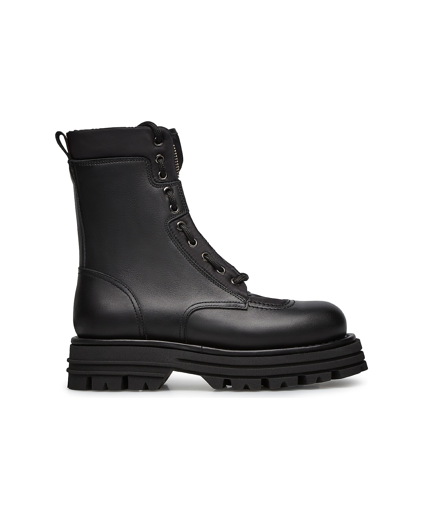 ankle boot in soft nappa leather with fabric inserts and front zip. lugged sole. colour: black material: nappa leather