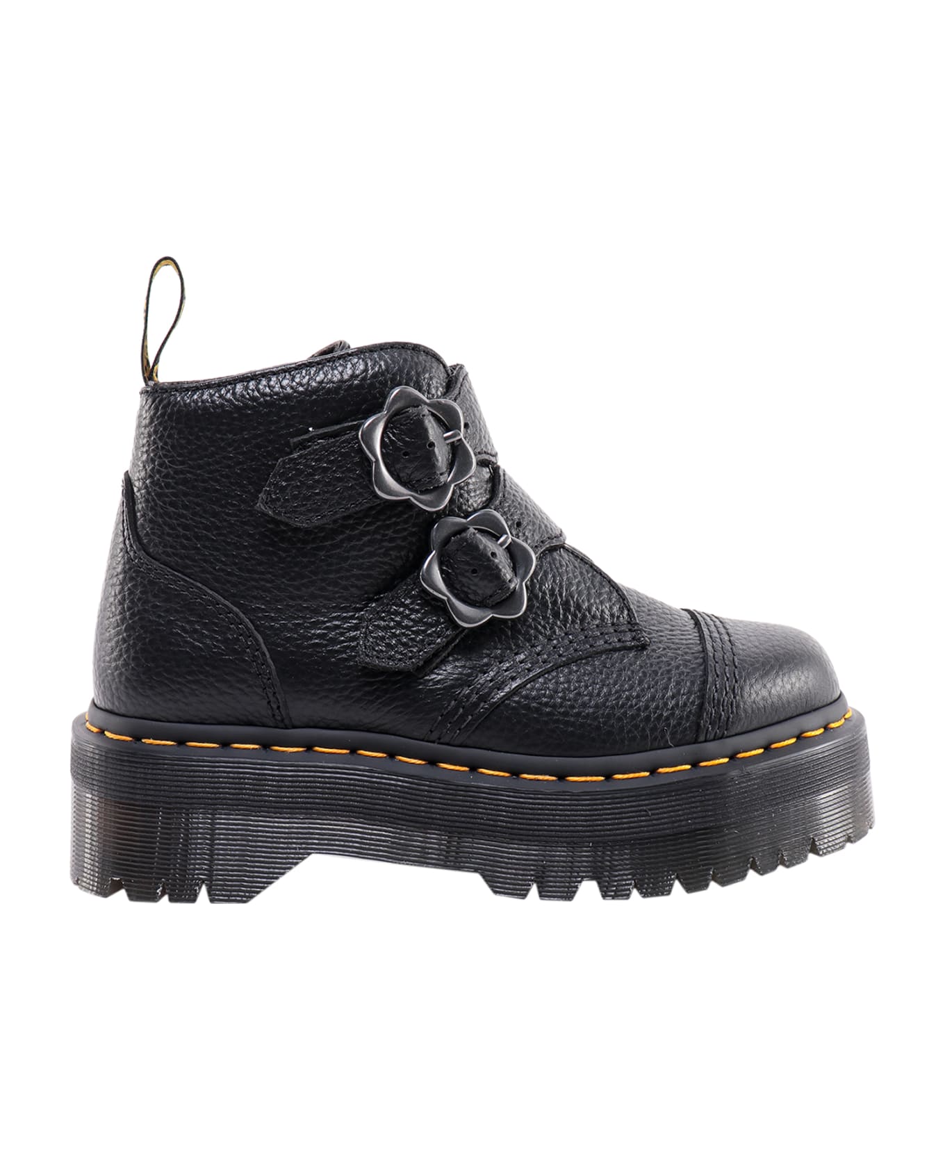 Dr. Martens, a British footwear brand also referred to as Doc Martens or Docs, is widely known for its combat boots and punk aesthetic. Its iconic design features an air-cushioned sole, welted construction, and signature yellow stitching.