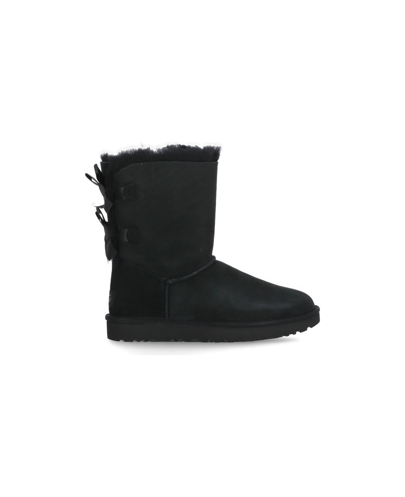- Black UGG shearling woman's boots - Round toe - Rear bows - Treadlite by UGG sole