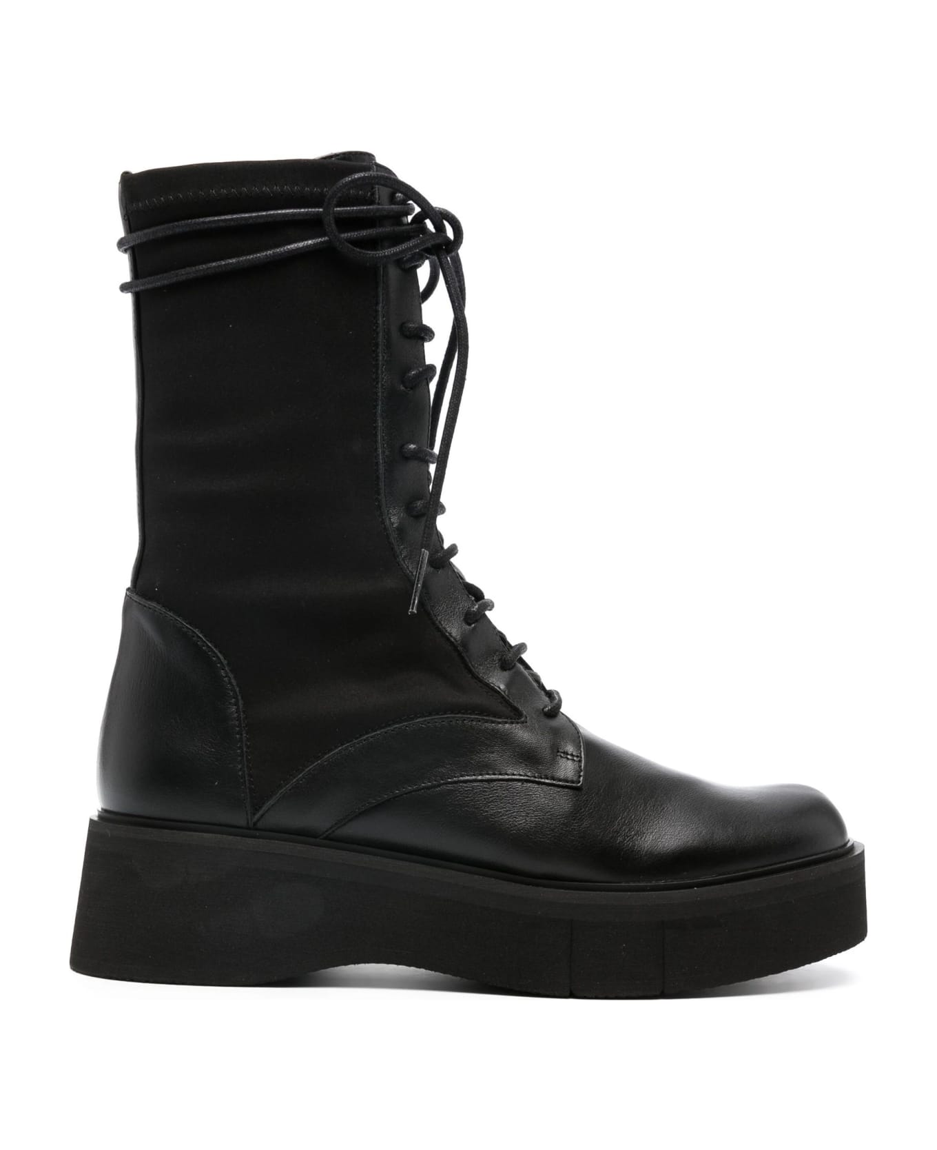 Black Jade leather ankle boots, panelled design, round toe, front lace-up fastening, ankle-length, platform sole, heel height 5 cm Composition: Calf Leather, 100% , Fabric, 100%