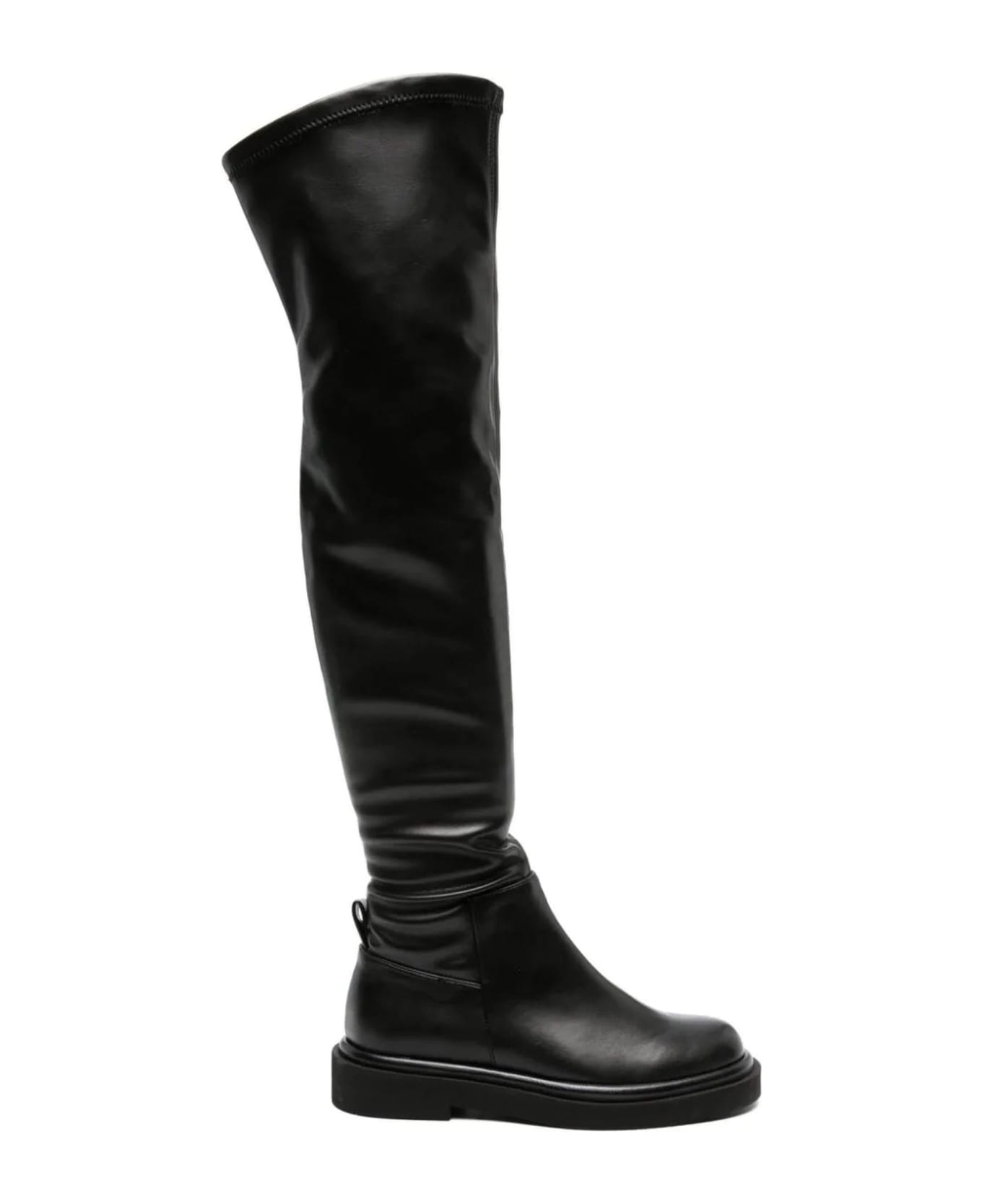 Black Kenda knee-length boots, faux leather, tonal stitching, pull-tab at the heel, round toe, side zip fastening, branded insole, flat rubber sole, knee-length, leather lining Composition: Polyurethane, 100%