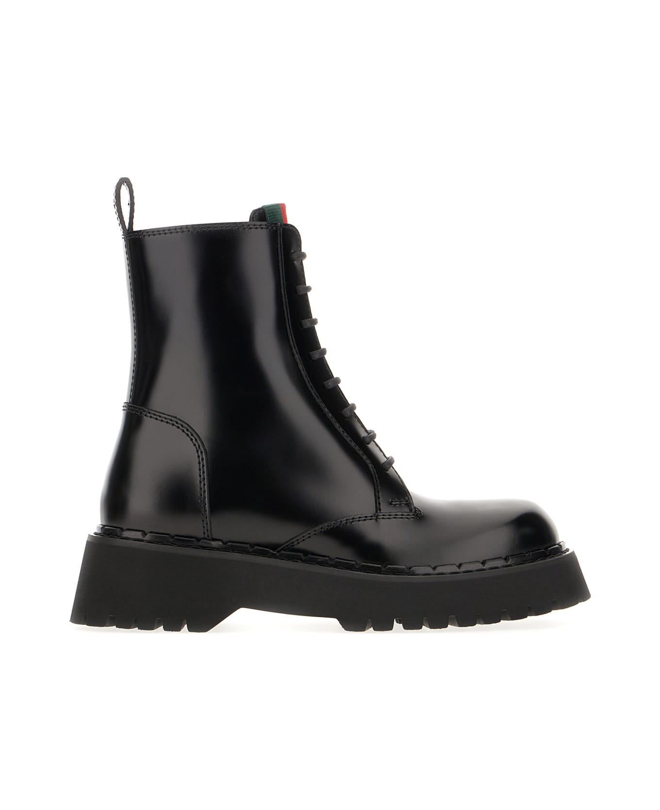 Ankles boots realized in smooth leather enriched by Web Ribbon detail on the tongue. -Tonal leather pull-tab heel -Zip on the side and lace-up closure -Embossed logo on the inside Composition: Exterior: 100% Leather Interior: 100% Leather Sole: EVA e Rubber