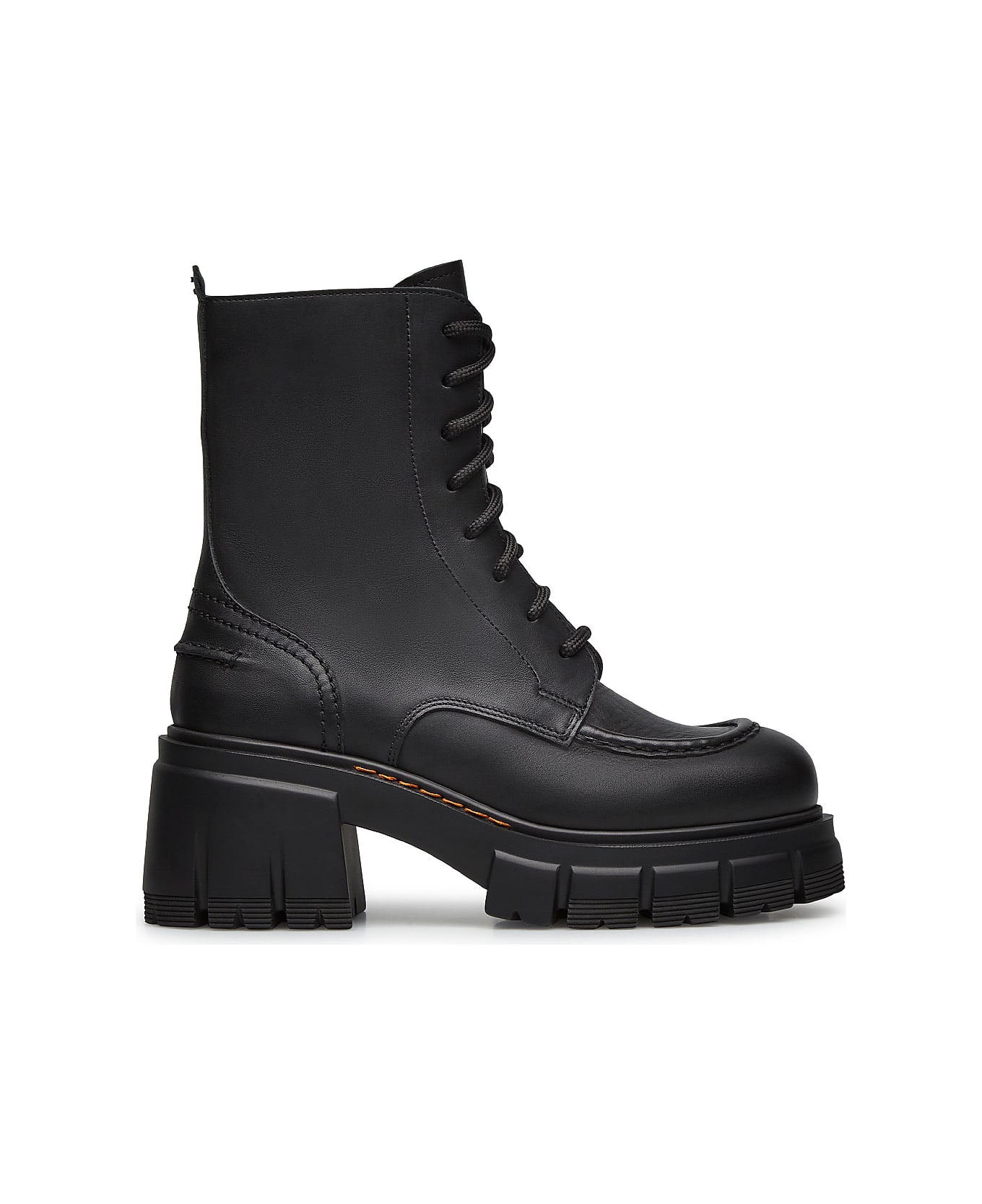 high-fashion laced boot made from nappa leather, with platform and chunky squared heel in rubber. colour: black material: nappa leather