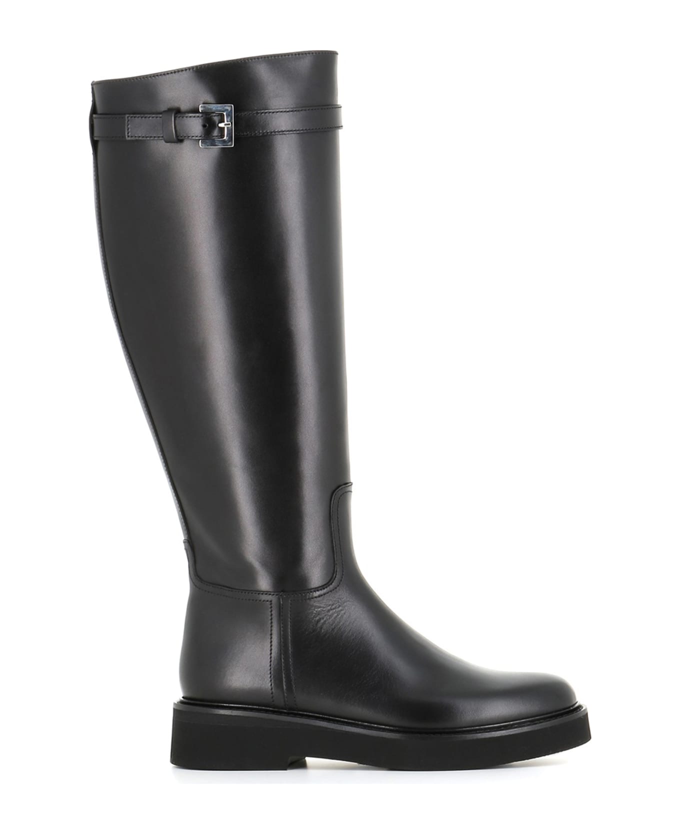 Black leather Boot from Doucal's, featuring by a round shape, a side zip closure and a decorative buckle. High rubber sole. Lined interior. Heel: 4 cm