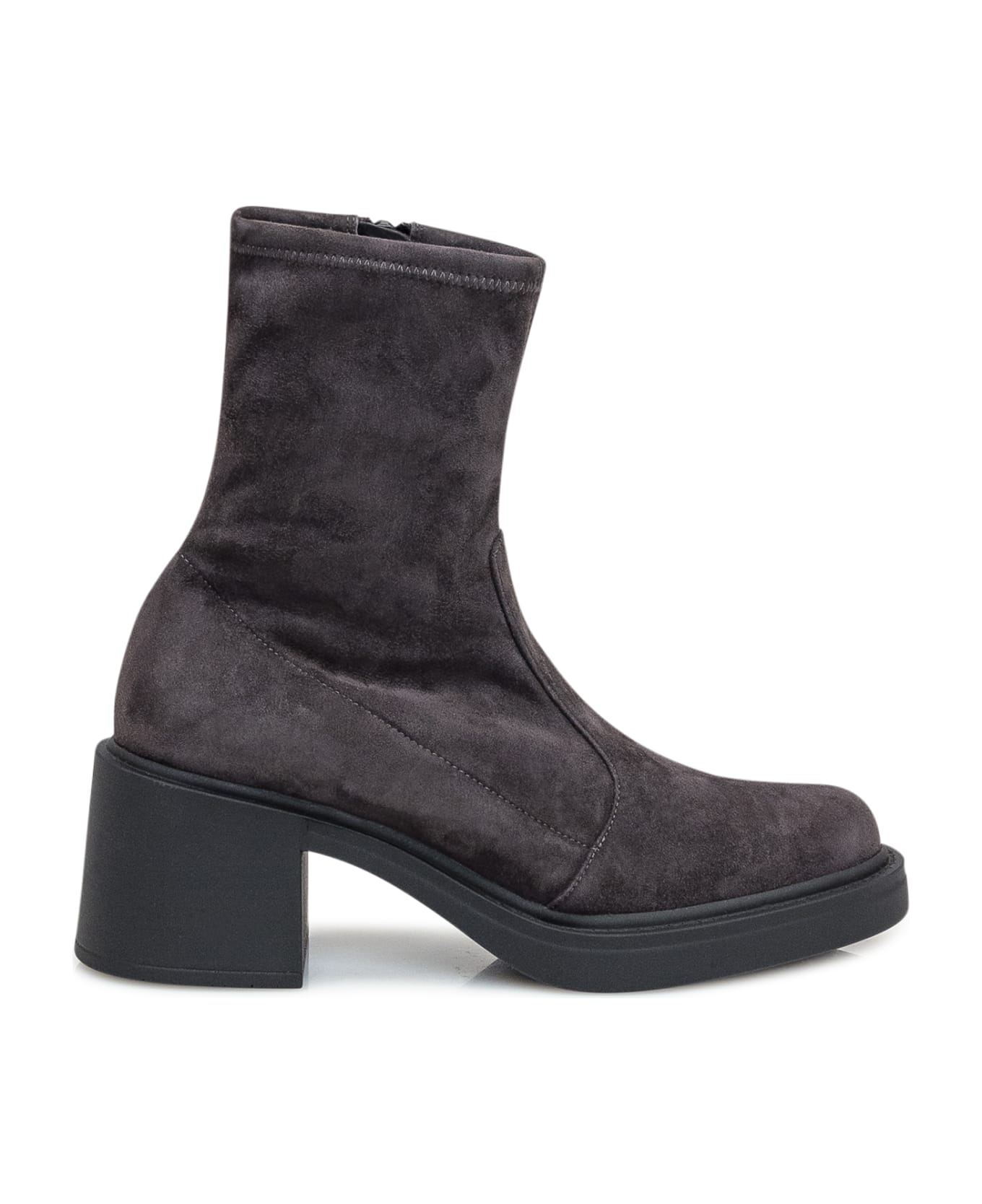 Suede boot. Closure with zip on the side. Round toe.