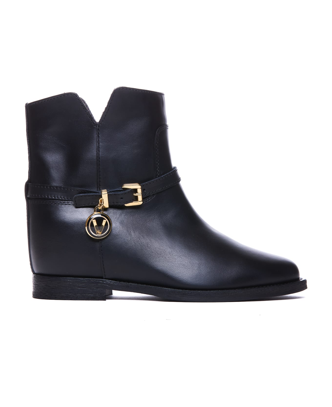 Via Roma 15 black booties, leather upper, lateral plaque logo, round toe