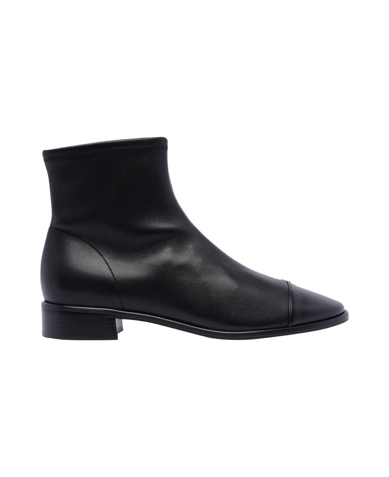 Tory Burch black booties, leather upper, lateral zip closure, round toe
