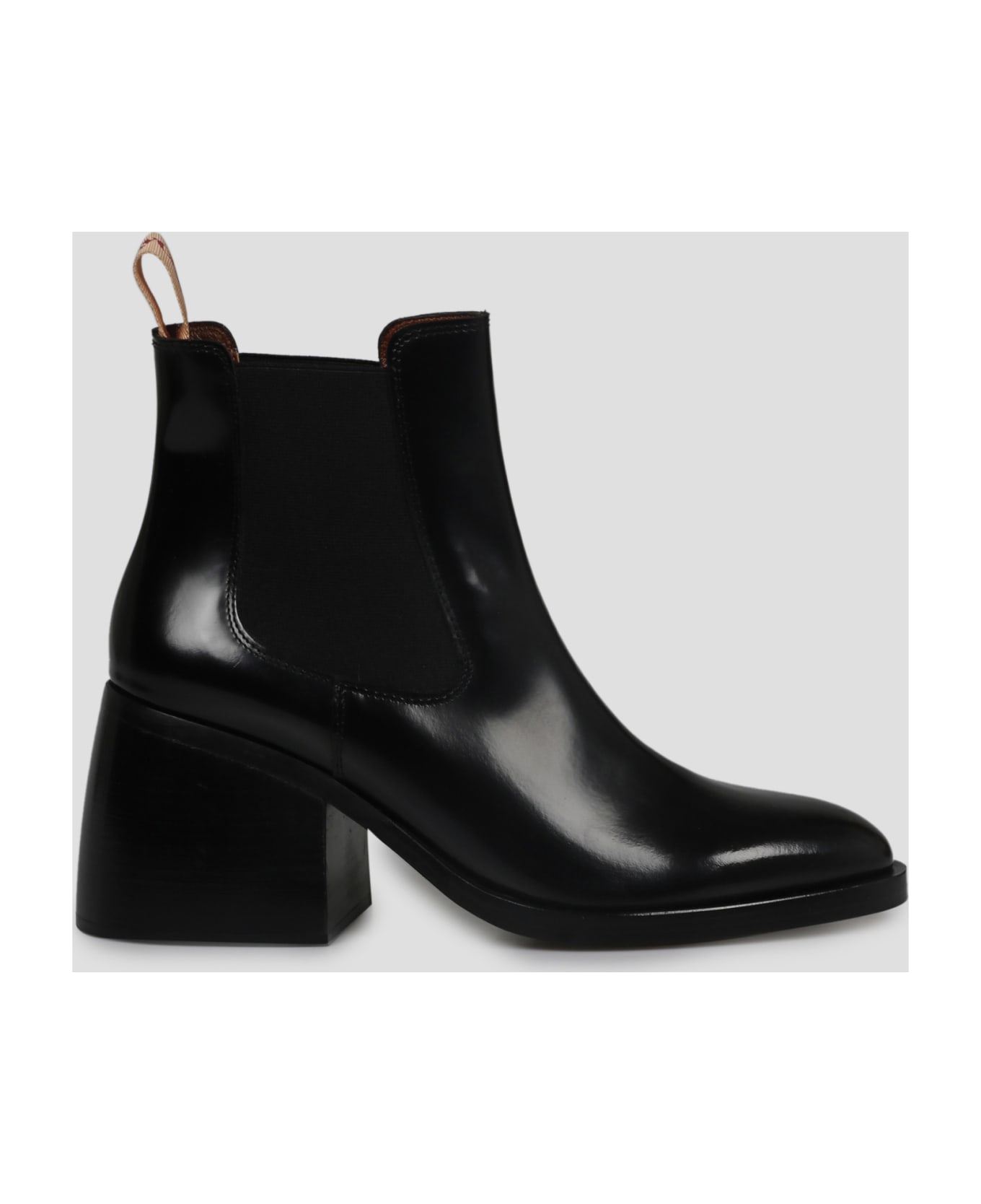 See by Chloè July ankle boots , in shiny leather. - FW22 - Heel: 7 cm - Elasticated side panels - Contrasting loop with logo on the back - Block heel - Leather sole - Made in Spain - Lamb skin