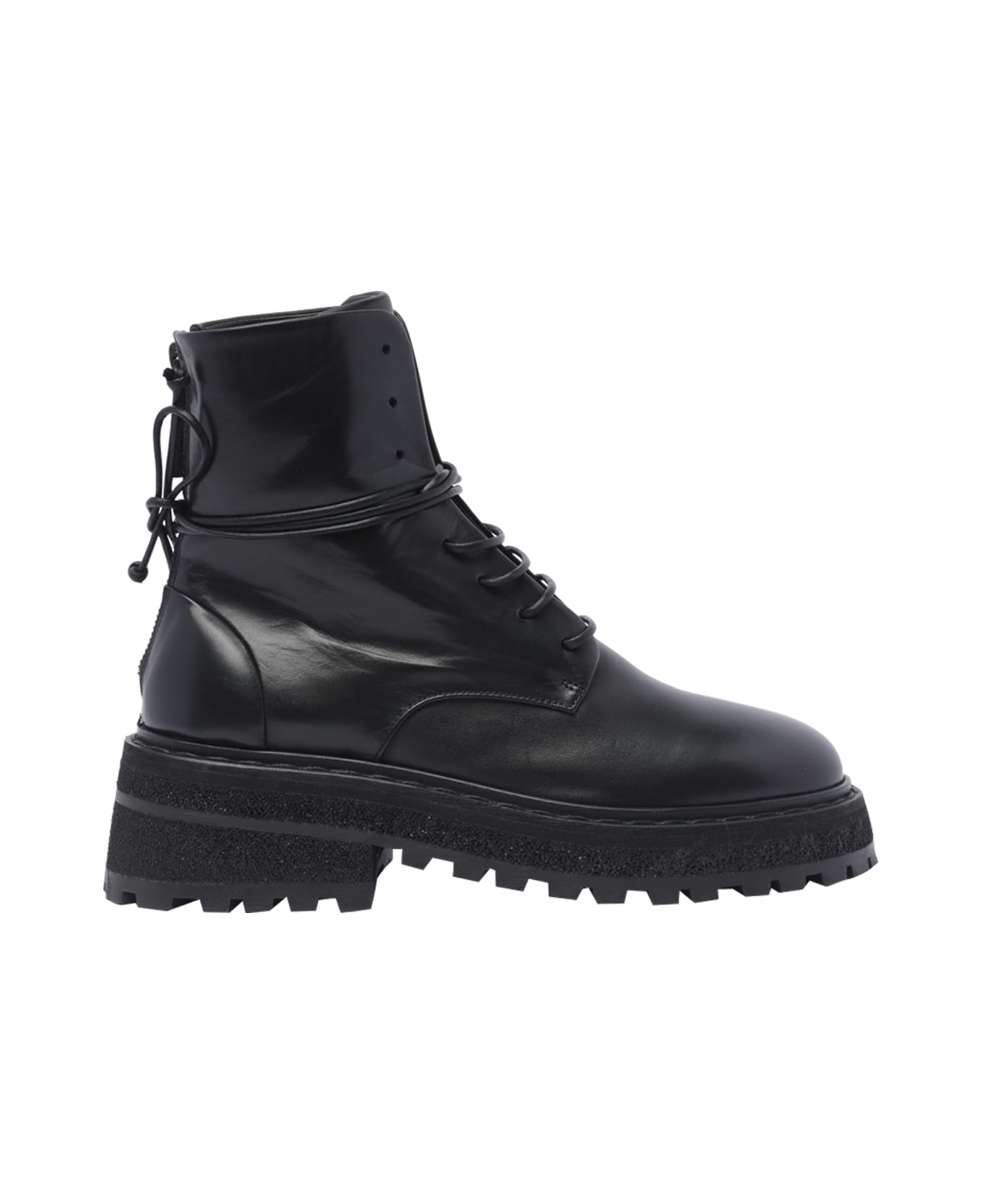 Marsell Carro booties, round toe, lace closure, leather upper, rubber sole