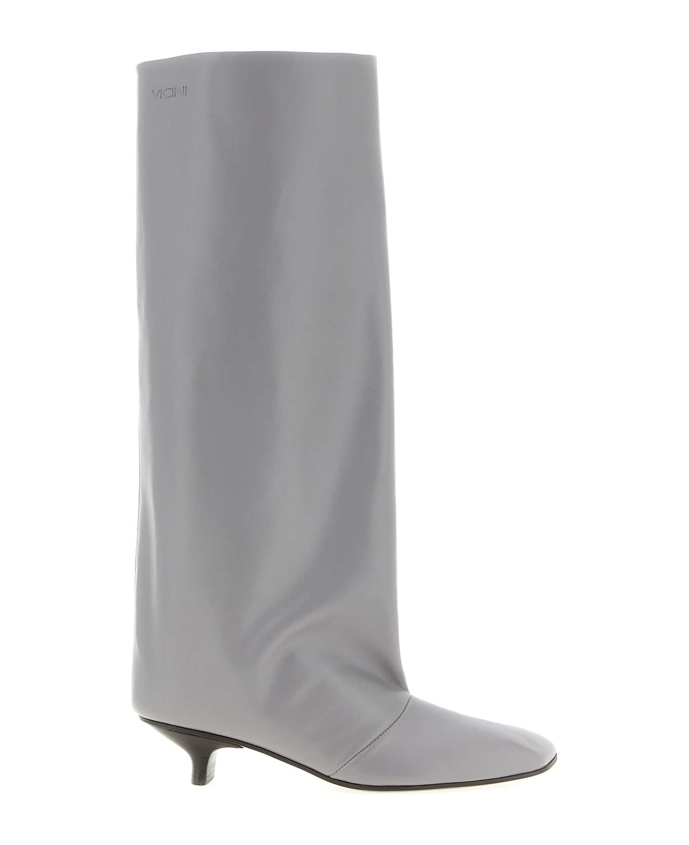 'Cizin' leather boots, square toe, slip-on model, tube leg, heel, leather sole.