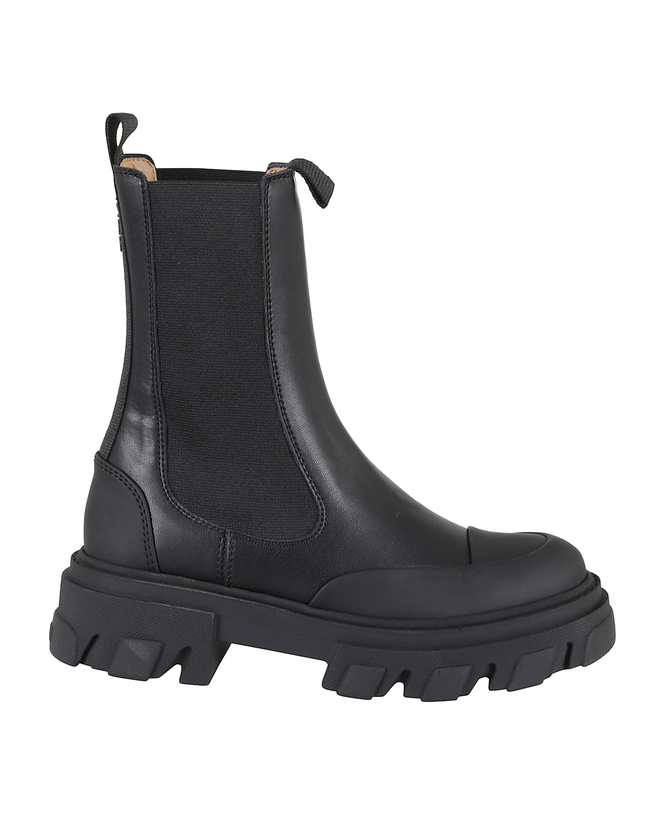 Cleated Mid ankle boot - Ganni - Black color - Leather upper - Rubber toe cap - Elastic insert at side - Rubber sole