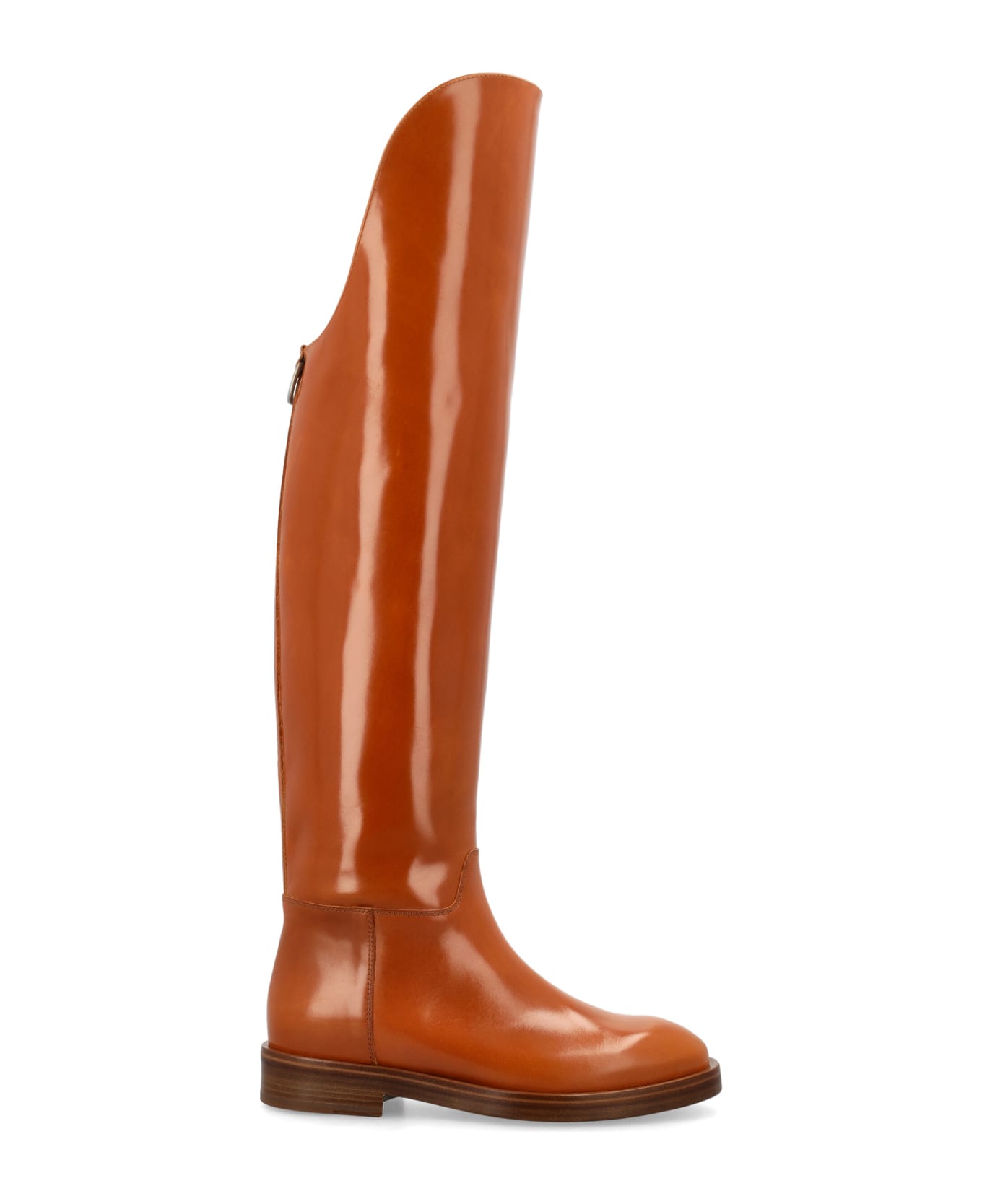 Leather Equestran High Boots By Durazzi Milano. Featuring: Over-the-knees Design Pull-on Style D-ring Detail At Back Round Toe Leather Sole Heel: 3cm