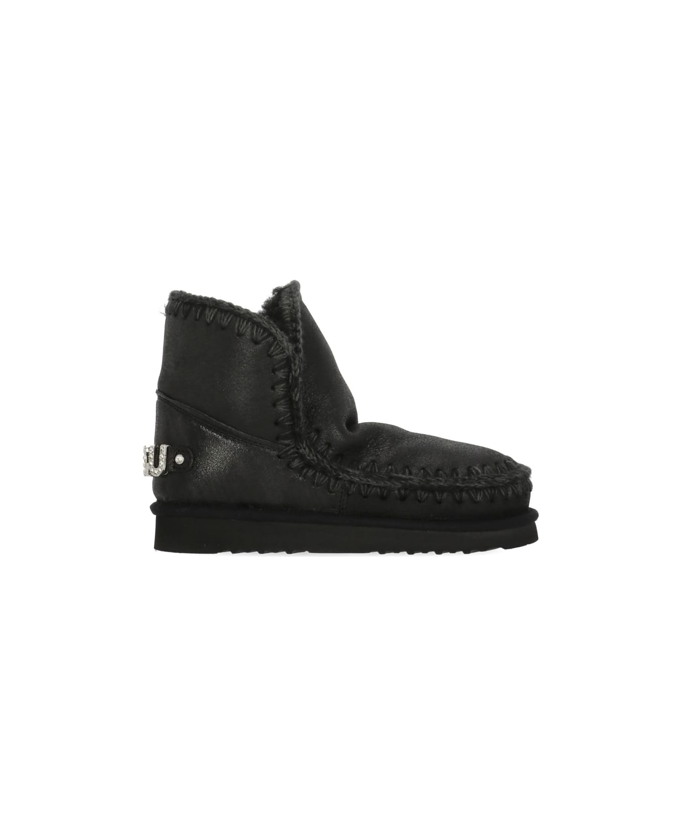 - Mou black woman's shearling boots - Round toe - Iconic wool visible stitching - Rear strass logo
