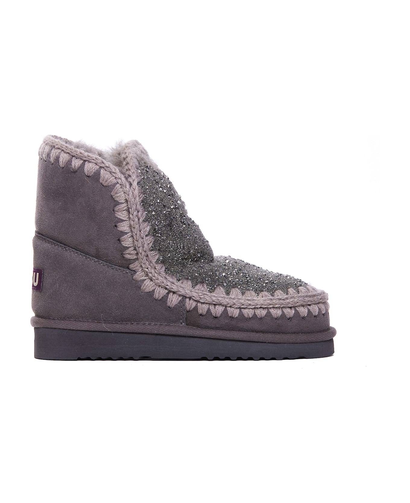 Mou grey Eskimo Hotfix boots, round toe, frontal glitter detail, logo on the back