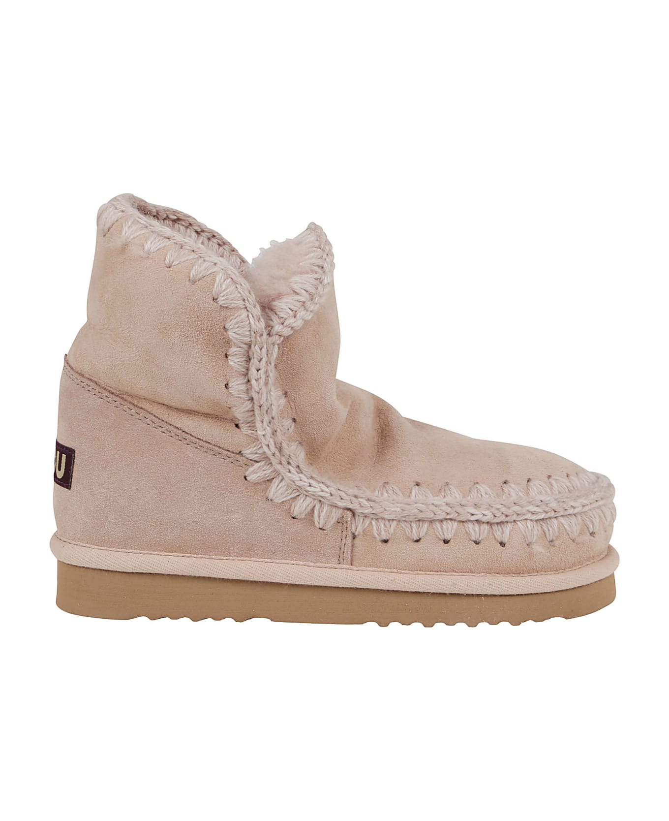 Sheepskin Eskimo 18 ankle boots from Mou featuring a round toe, a slip-on style, a flat rubber sole, signature crochet stitch detailing and a rear logo patch.