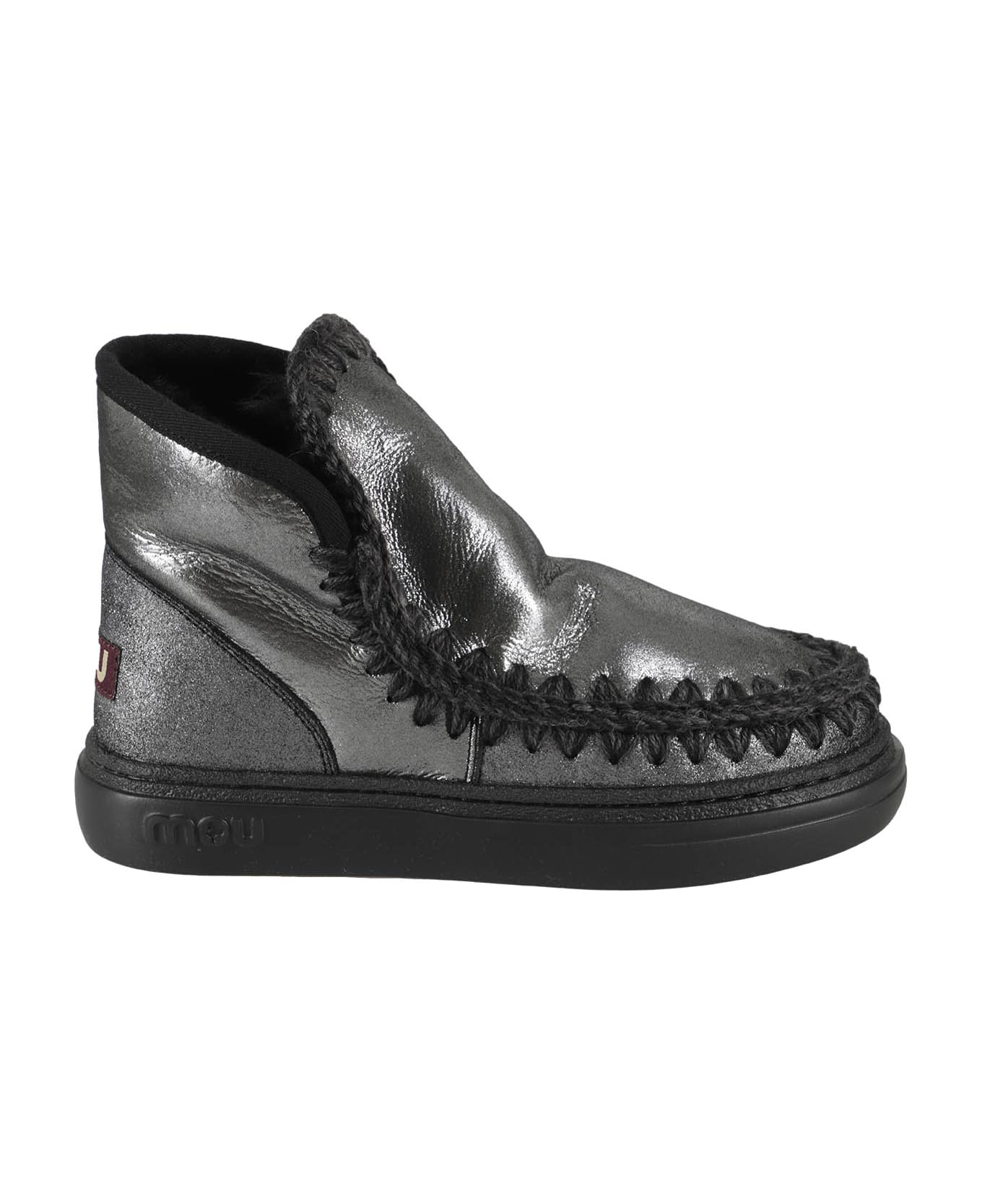 Eskimo Low Boot - Mou - Silver color with micro glitter - Iconic black color crochet details - Black color rubber sole - Reinforced heel - Logo back.