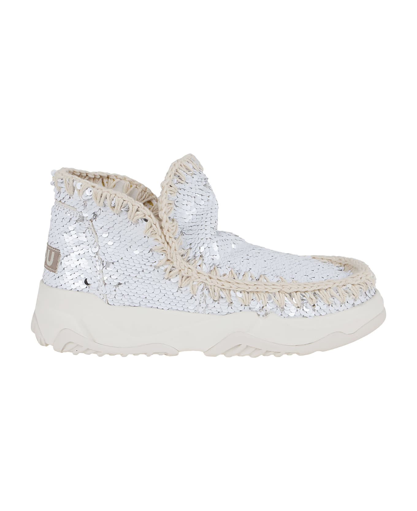 Eskimo trainer all sequins BY MOU. Distinctive eskimo stitching embellished with sparkling sequins; Completed with cotton lining and padded suede insole; very light rubber and EVA outsole Height 15cm.