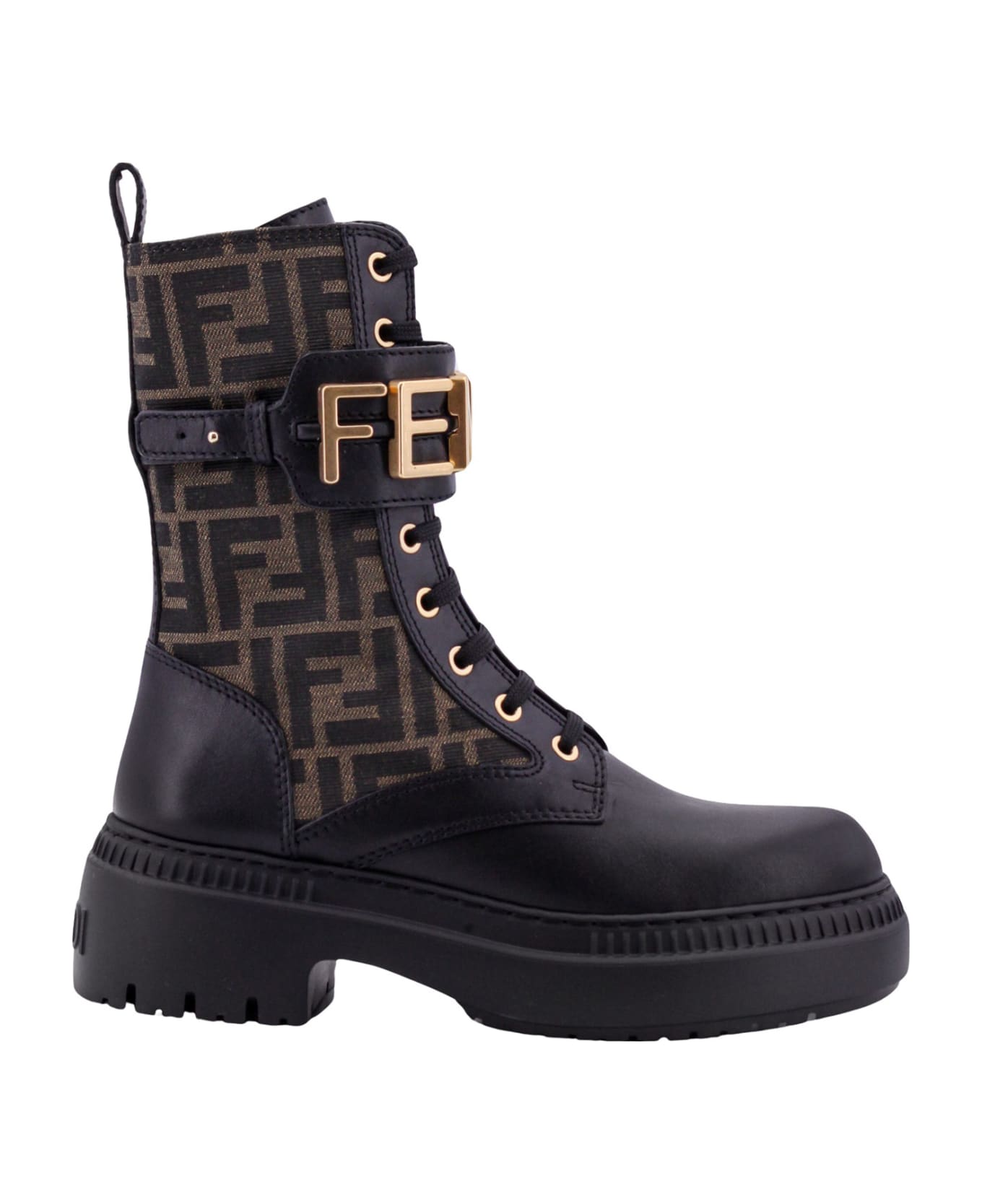 FF jacquard fabric and leather boots - Lace-up And Lateral Zip Closure - Metal Lettering Logo - Rubber Sole - Made In Italy - Fabric And Leather - External : Fabric And Leather
