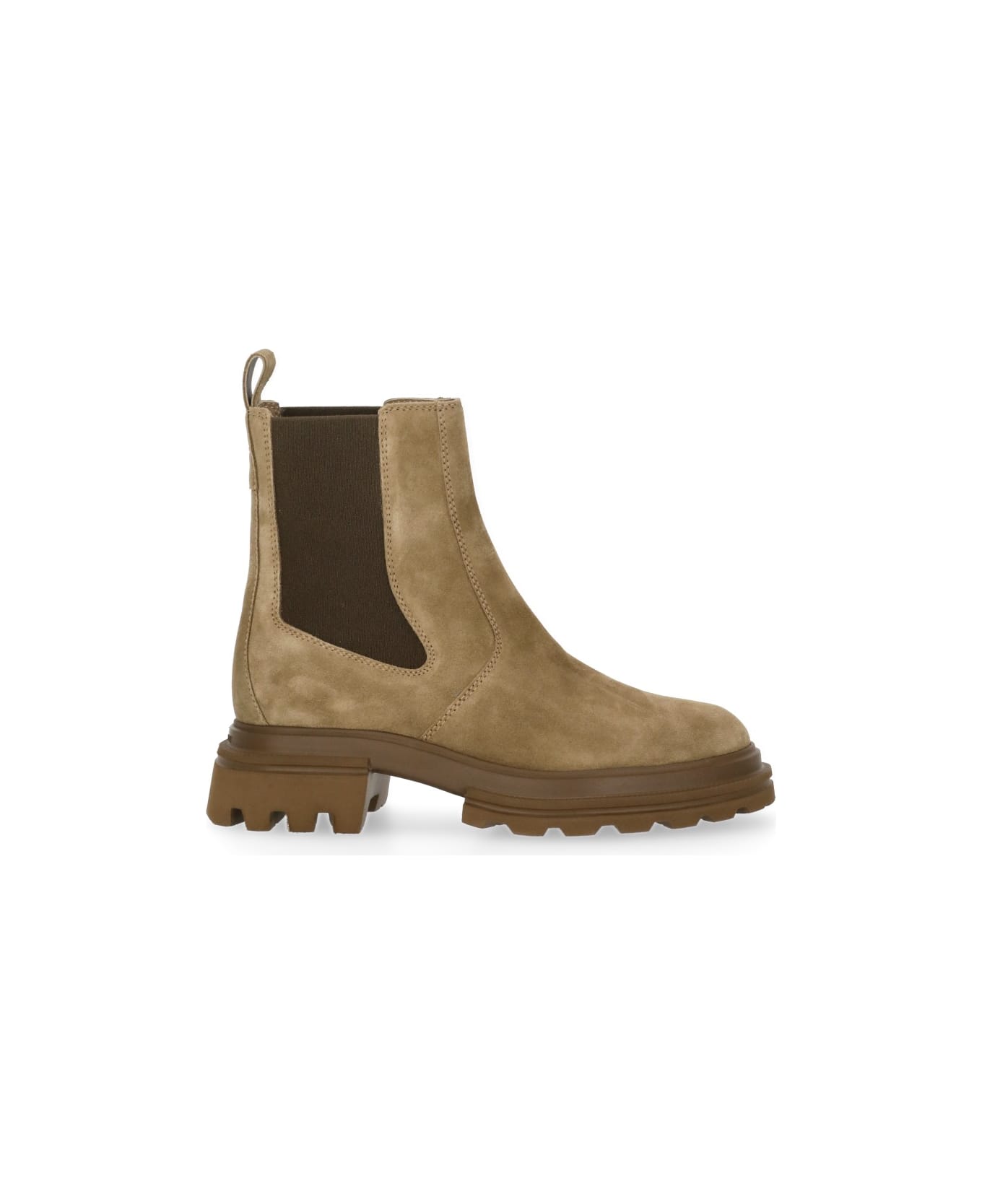 - Hogan beige suede leather woman's Chelsea boots - Round toe - Side elastic inserts - Raised rubber sole (5 cm)