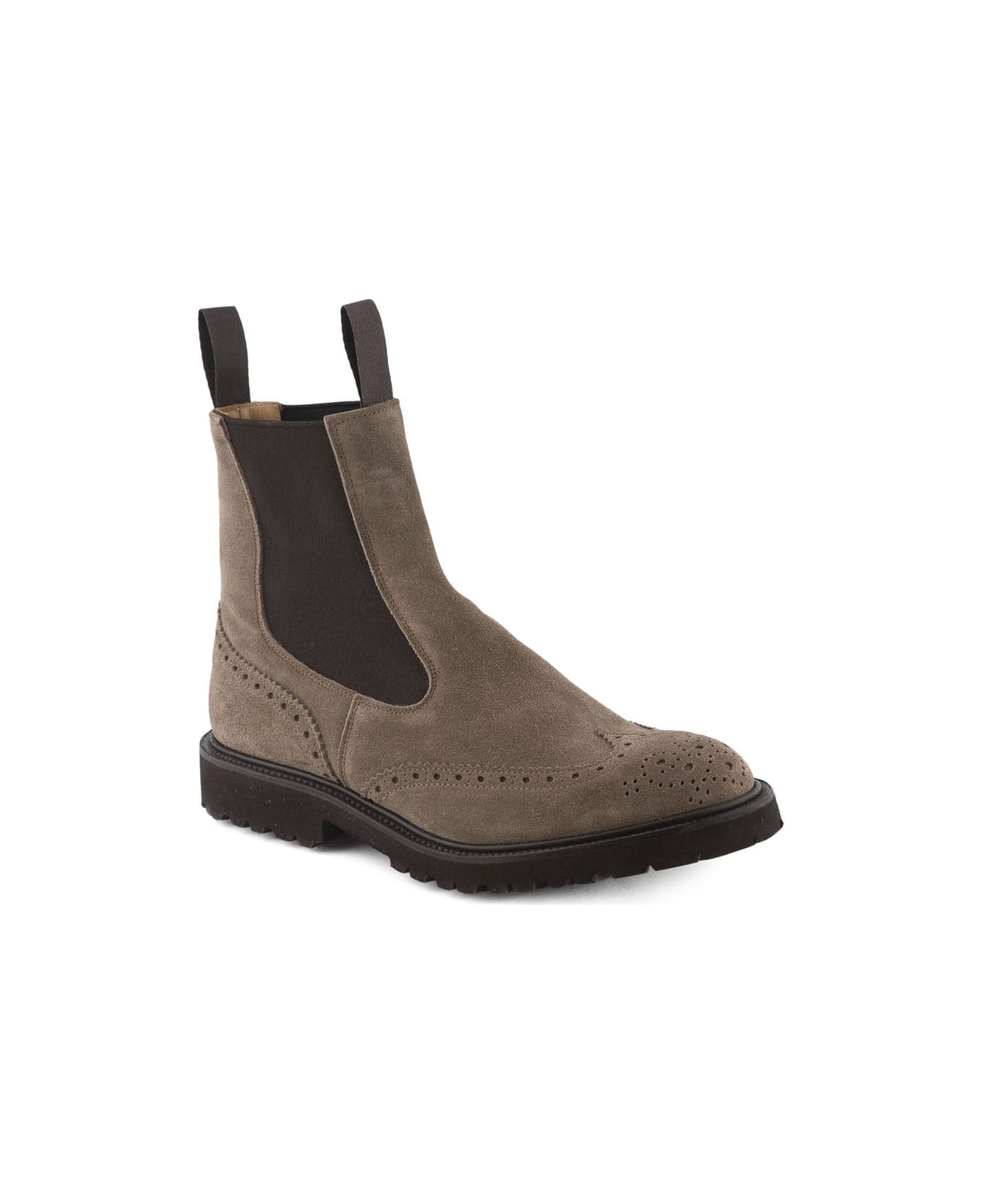 Visone suede chelsea boot with brogues, technical fabric elastic, light commando rubber sole.