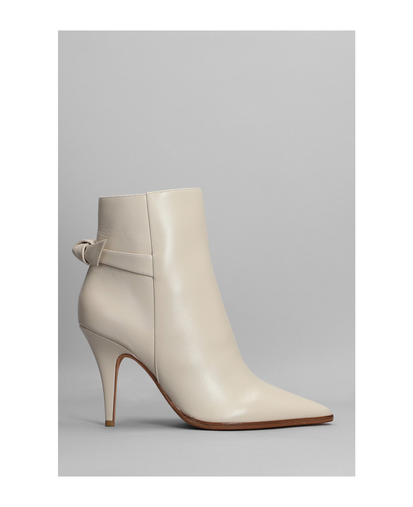 High heels Ankle boots in beige leather, pointed toe, bow detail, zip clousure, 100% leather, leather sole, heel 95 mm, Made in Brazil