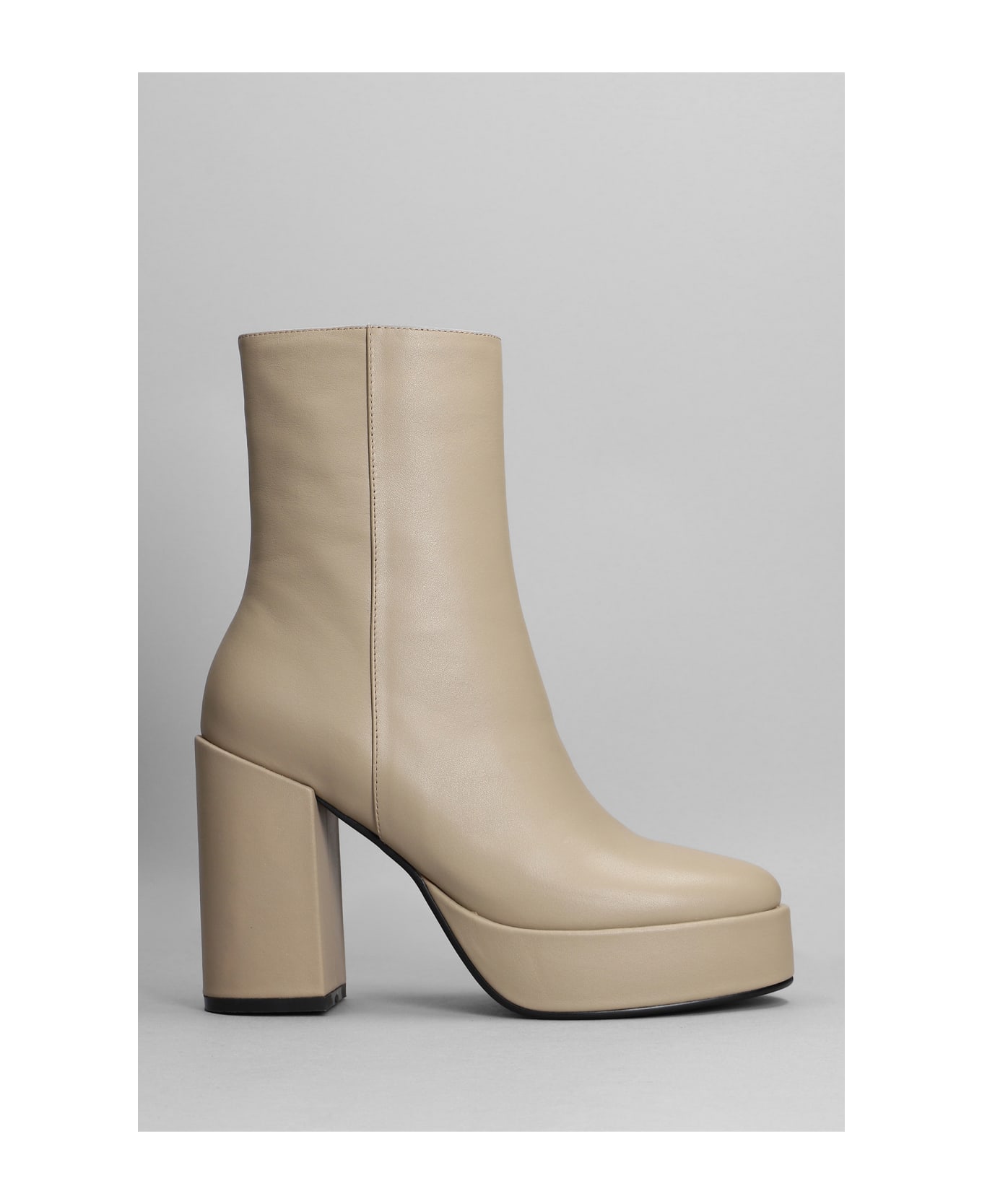 High Heels Ankle Boots In Taupe Leather