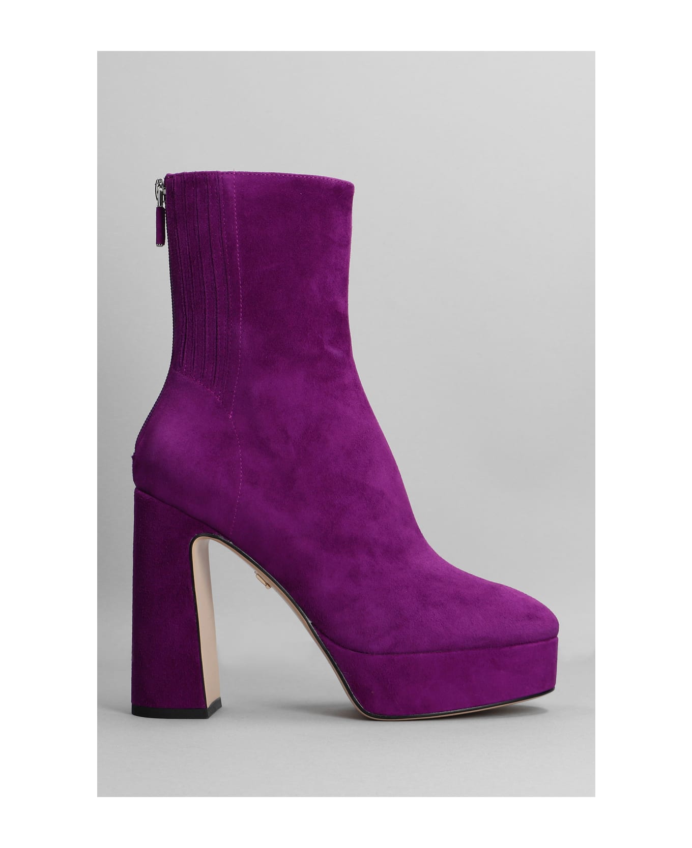 High heels Ankle boots in Viola suede, back zip, almond toe, plateau, 120 mm heel, 100% suede, Made in Spain