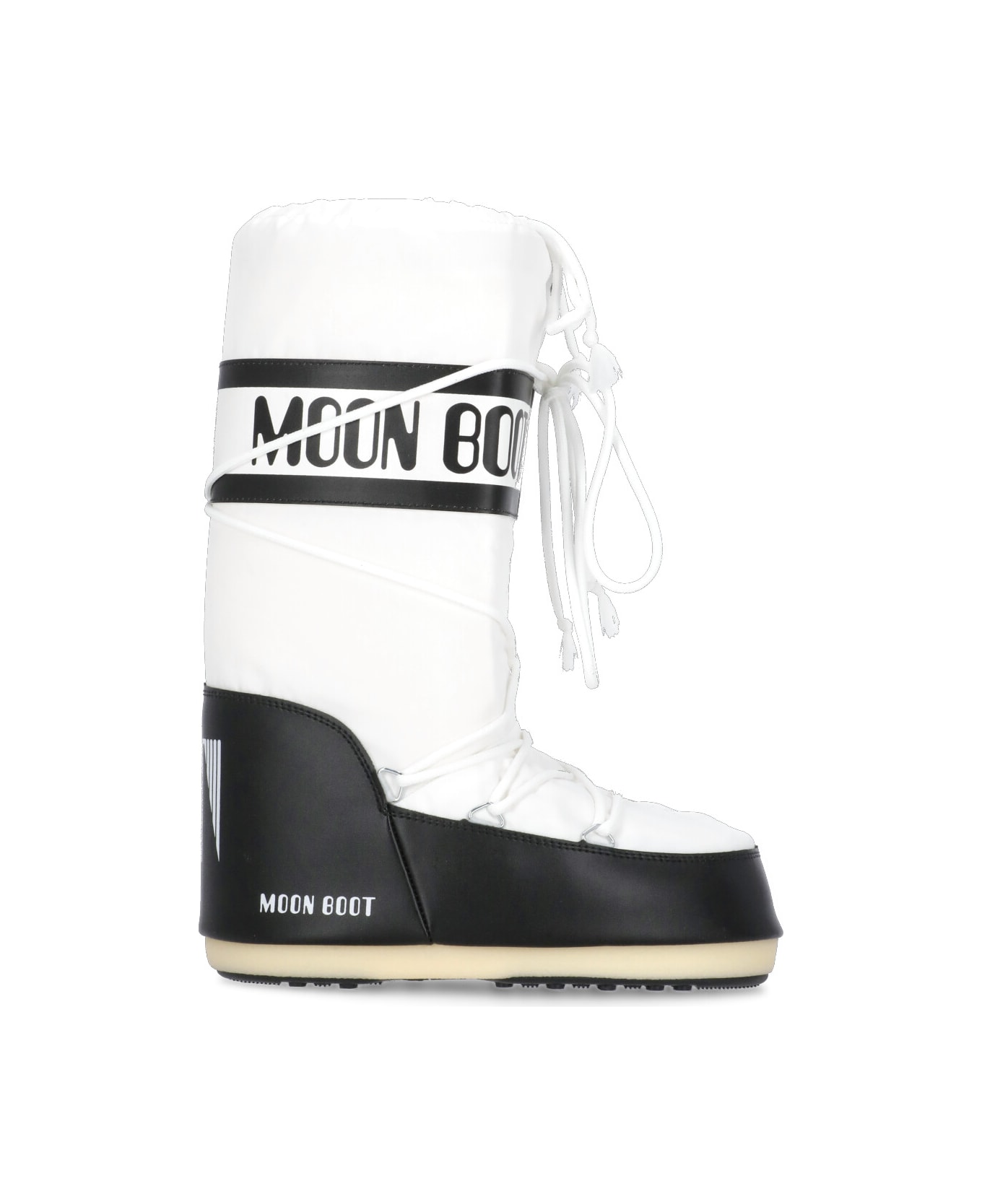 - White Moon Boot waterproof fabric boots for woman - Round toe - Front drawstrings - All-over laces details - Rear and side contrasting color logo - Contrasting color logoed band at ankle Composition: 70% Polyamide, 30% Pvc Lining:, 100% Polyester Sole:, 100% Rubber