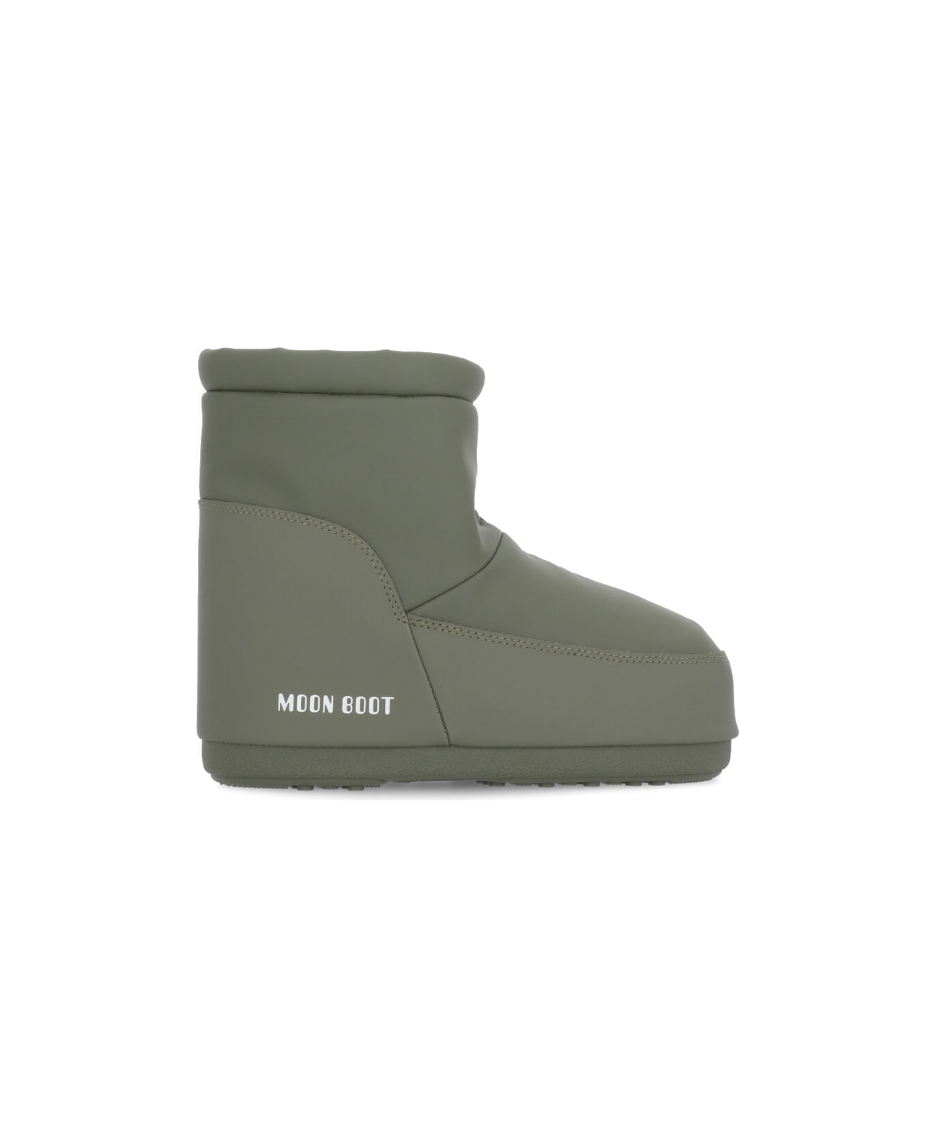 Icon Low Ankle Boots from Moon Boot: - Army green Moon Boot waterproof fabric ankle boots for woman - Round toe - Slip-on - Side contrasting color logo