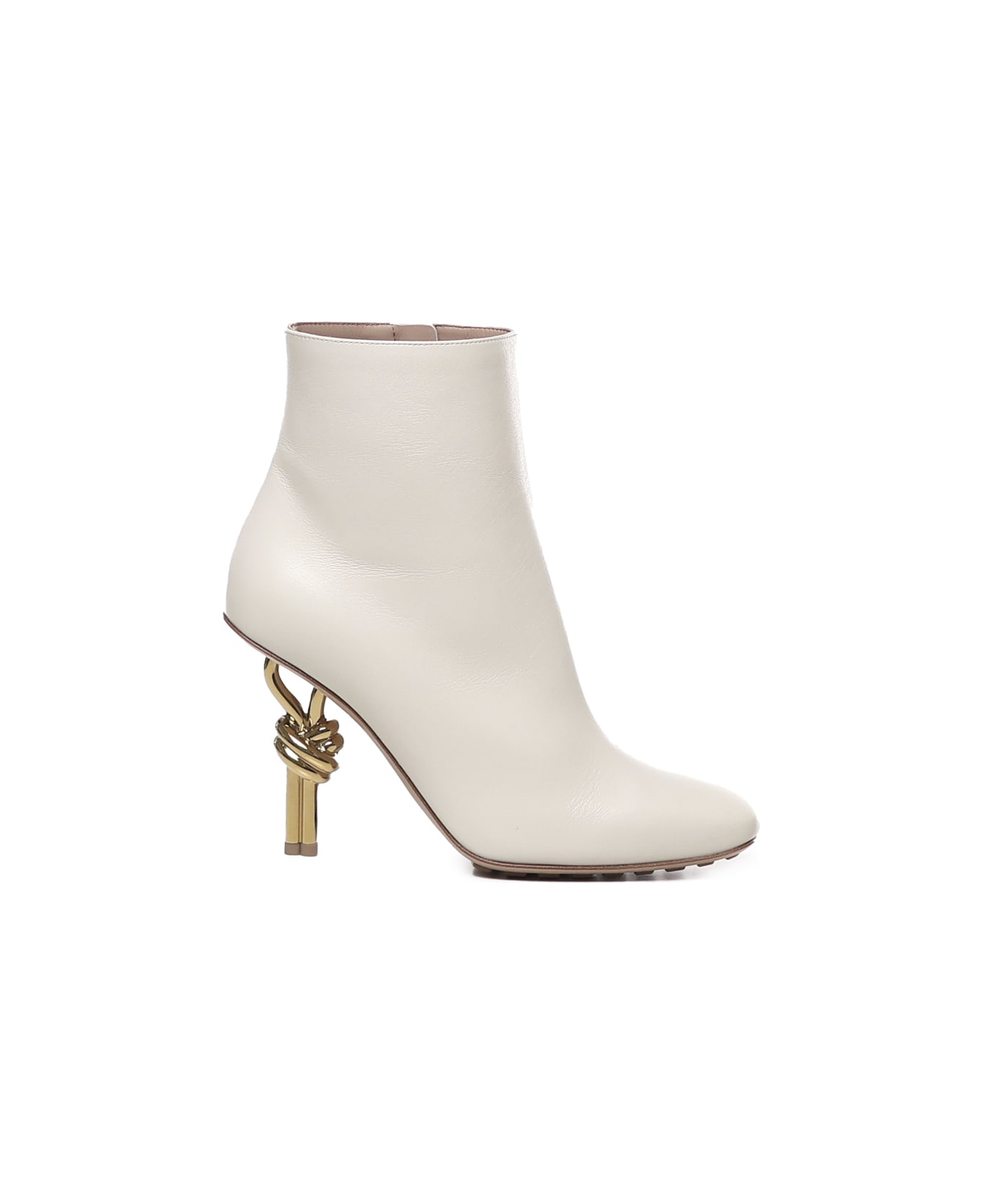 Sea salt Knot Boots In Calfskin from Bottega Veneta -Smooth leather ankle boot -Side zip closure -Square tip -Leather linings -Biodegradable leather sole -Injected rubber of biological origin -Knot heel in gold-colored metal -Made in Italy -Colour: Sea salt -100% Calfskin