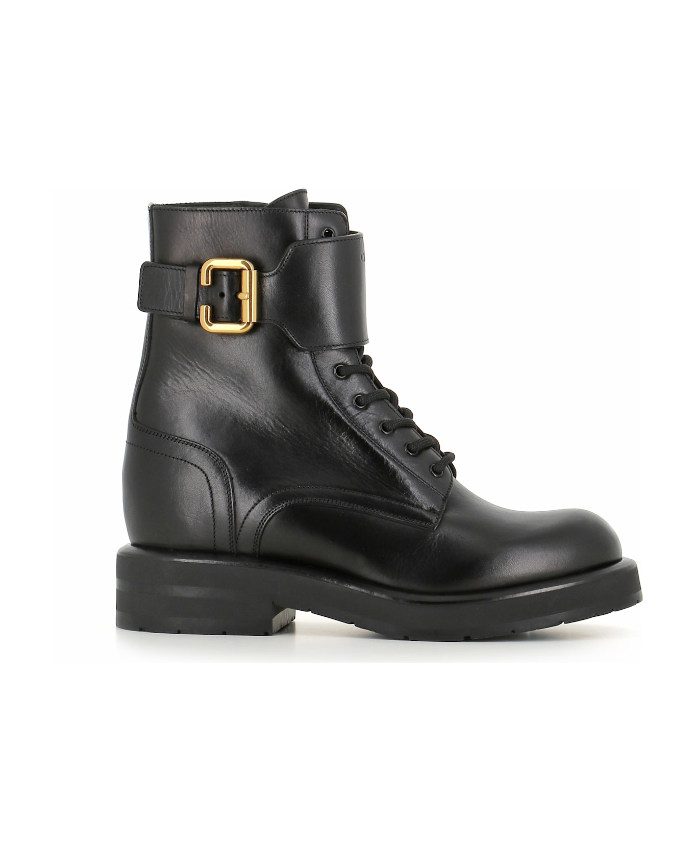 Black soft leather women's Lace-up boot by Chloè, featuring by a strap with a gold-coloured buckle and side zip closure. Serrated rubber sole. Lined interior. Internal rise. Heel: 3,5 cm Composition: Leather