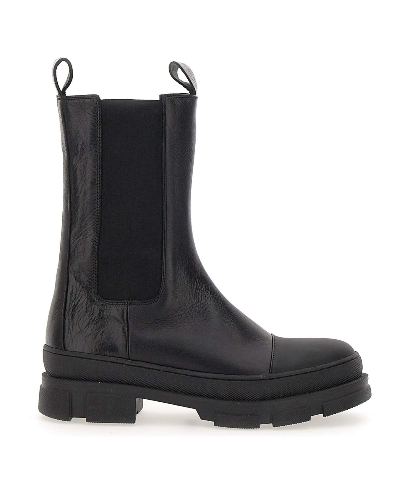 Philosophy di Lorenzo Serafini women's leather boots, sporty mood, black, Beatles model, round toe, side elastic inserts, tie-rods on front and back, 4cm high Vibram® rubber sole. Made in Italy.