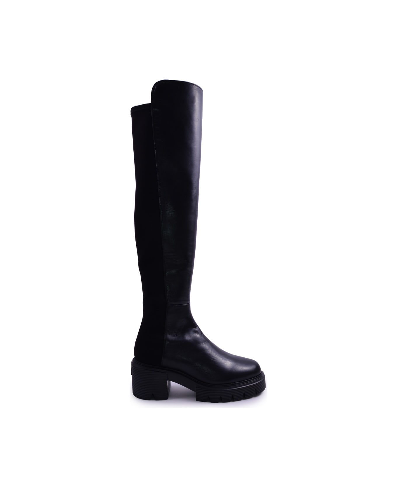• boot In Leather And Stretch Fabric
