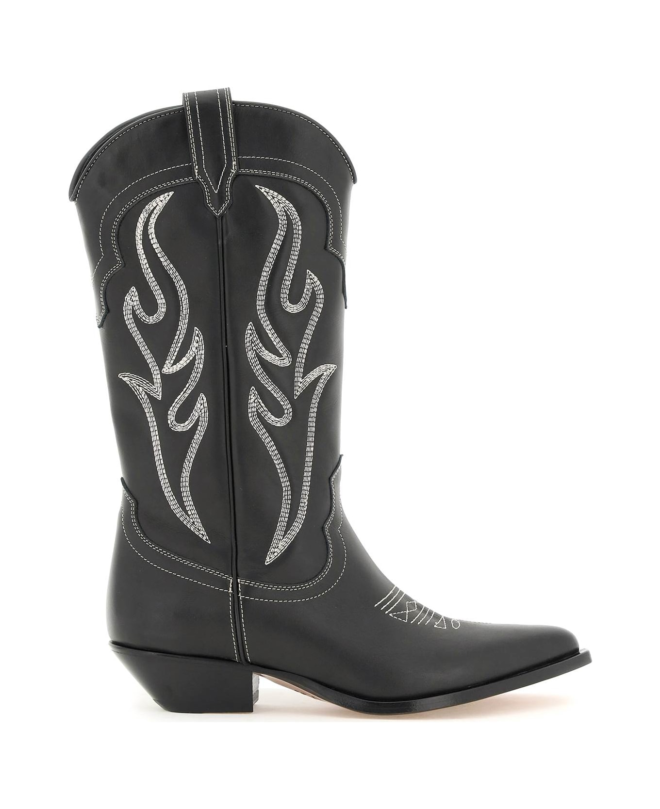 Santa Fe boots by Sonora in leather, characterized by the western-inspired silhouette with leather slanted heel and contrasting topstitched detailing. Pointed-toe, side loops, leather lining, leather sole.