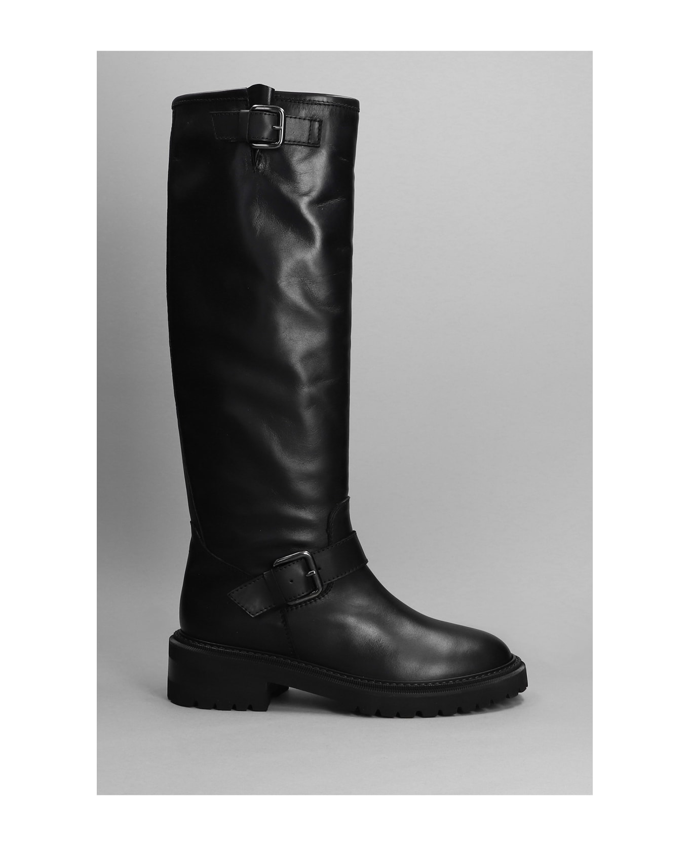 low heels boots in black leather, almond toe, two ankle strap, 100% leather, 50 mm heel, leather sole, Made in Italy