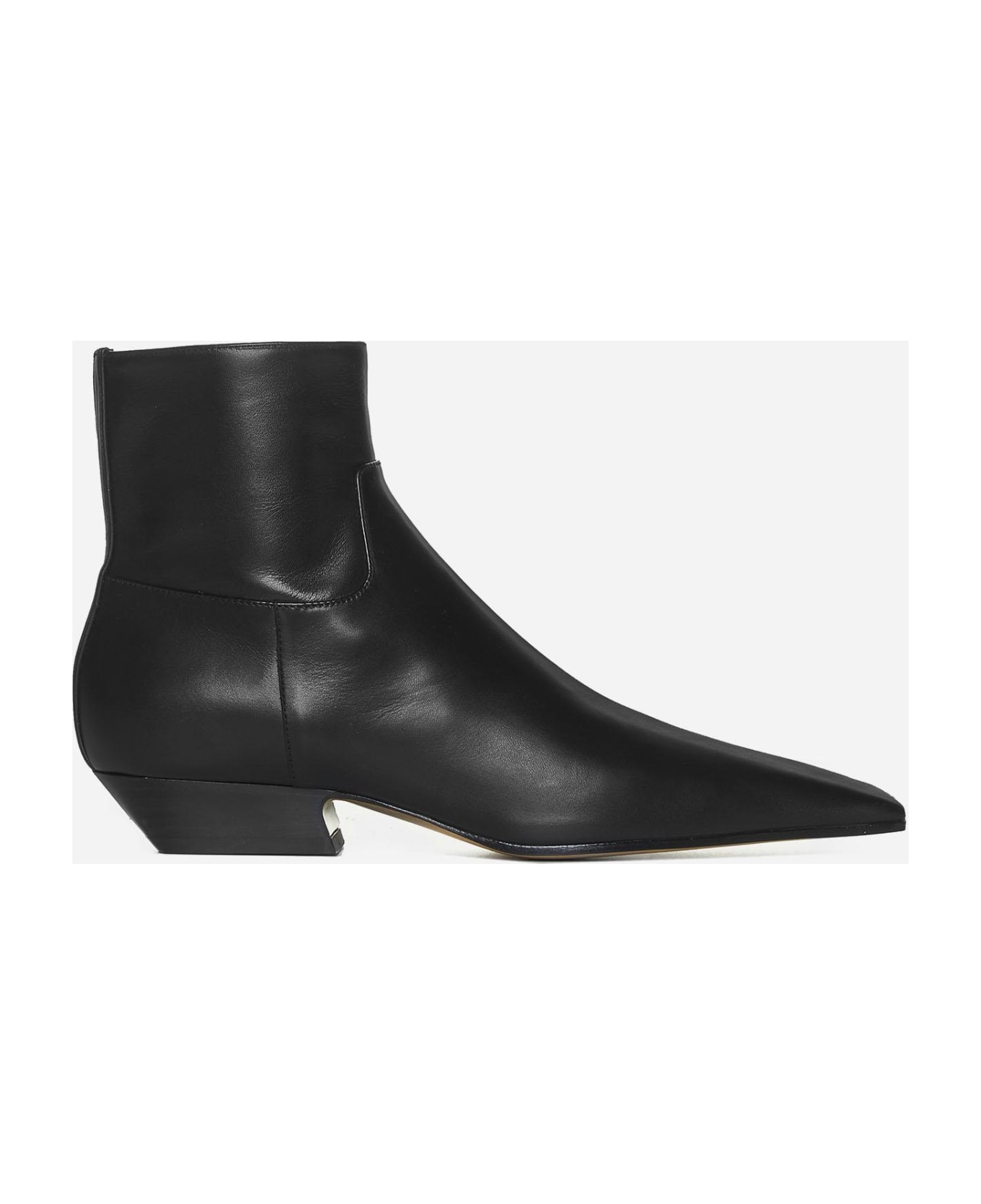 Khaite's Marfa black leather ankle boots featuring a sharp toe, side zip fastening, leather sole and low slanted heel. Composition: 100% calfskin
