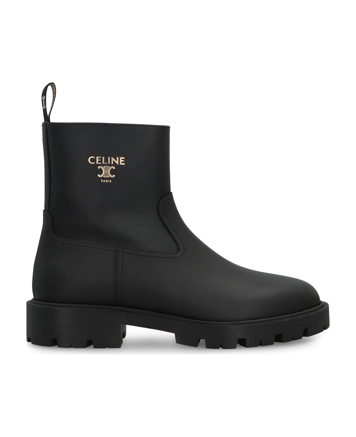 Calfskin model with rounded toe. detail logo celine triomphe paris. the closure is with a zipper on the side. 100% calf Composition: 100% % Calf