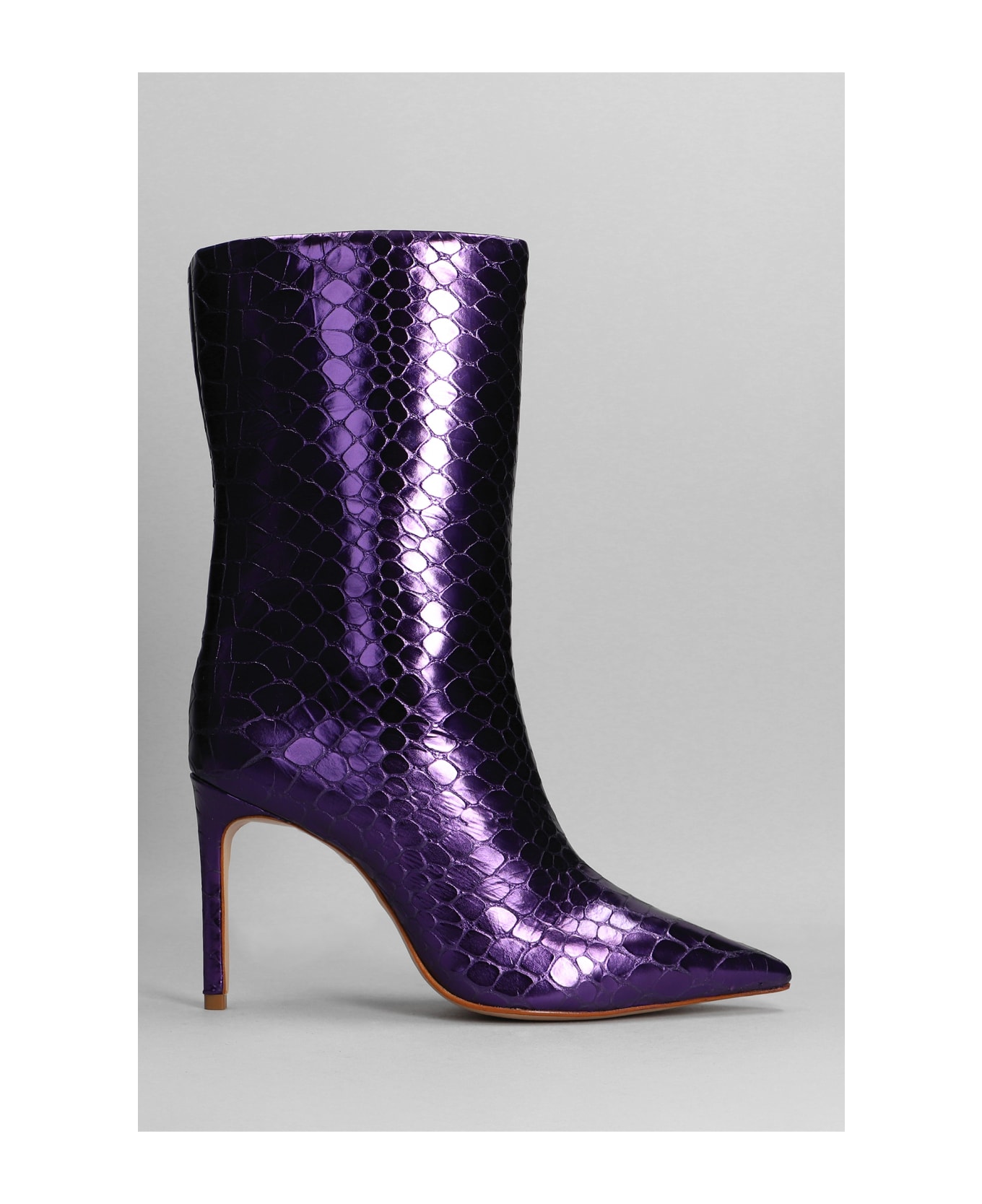 Mary High heels Ankle boots in Viola leather, pointed toe, straight leg, croccodile leather effect, zip closure, 100% leather, leather sole, Made in Brazil
