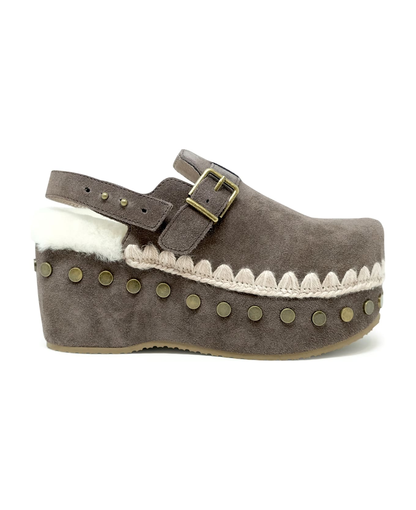 MOU FW611001A MOKA BACK STRAP LEATHER RUBBER CLOG SHOE, product code FW611001A, style name BACK STRAP, color MOKA, material LEATHER RUBBER, season FW24