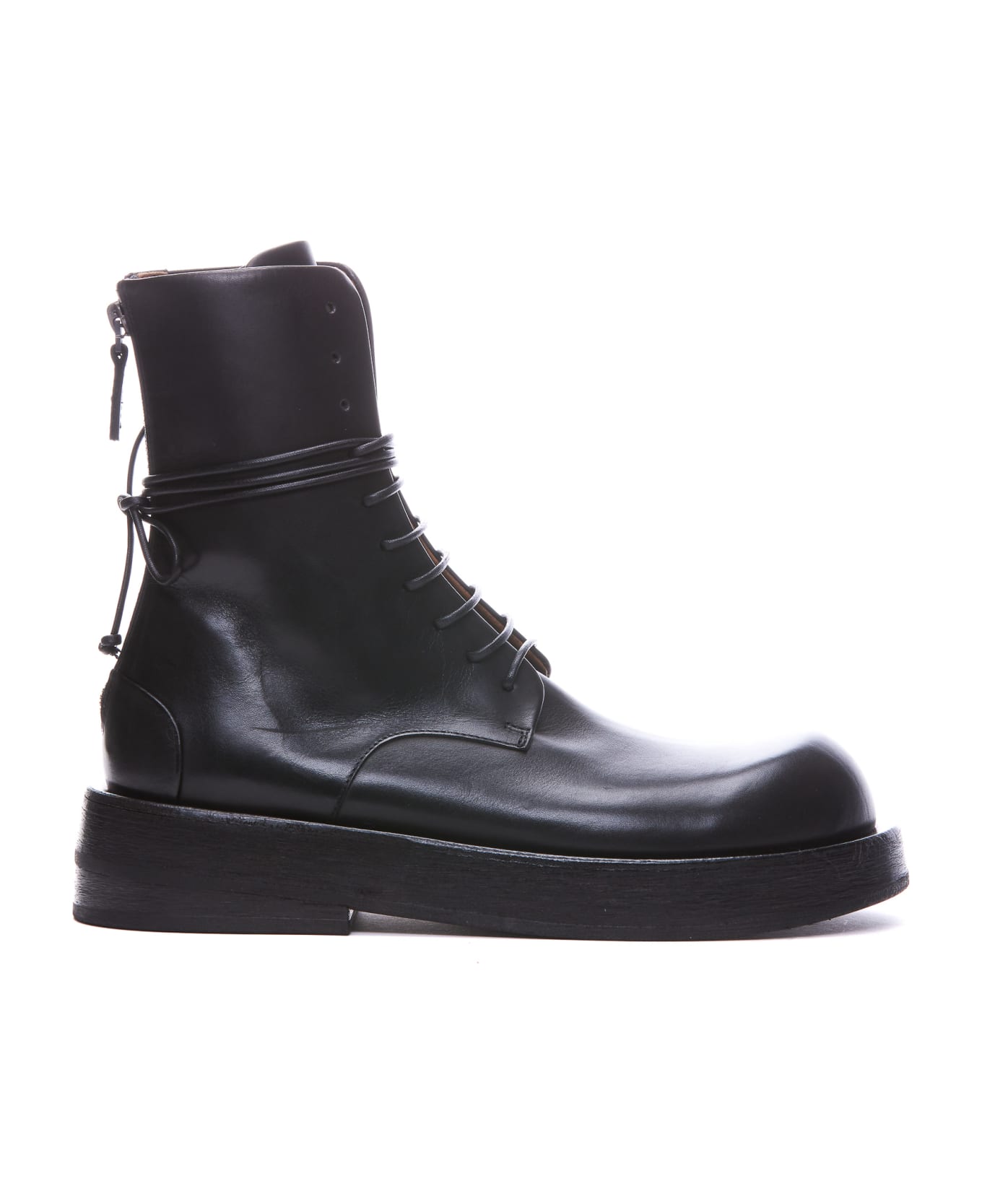 Marsell black Musona booties, leather upper, laces closure, round toe