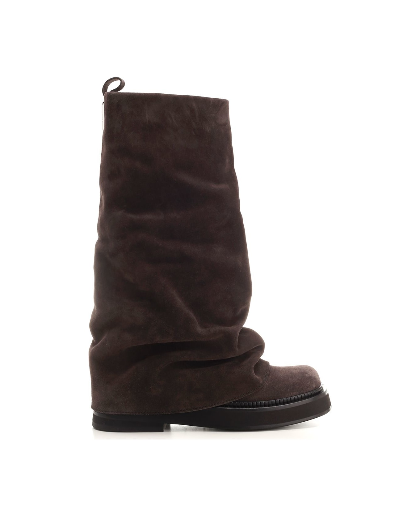 ''Robin'' combat boot in dark grey suede from The Attico, with multilayer micro monoblock sole and black leather. Composition: