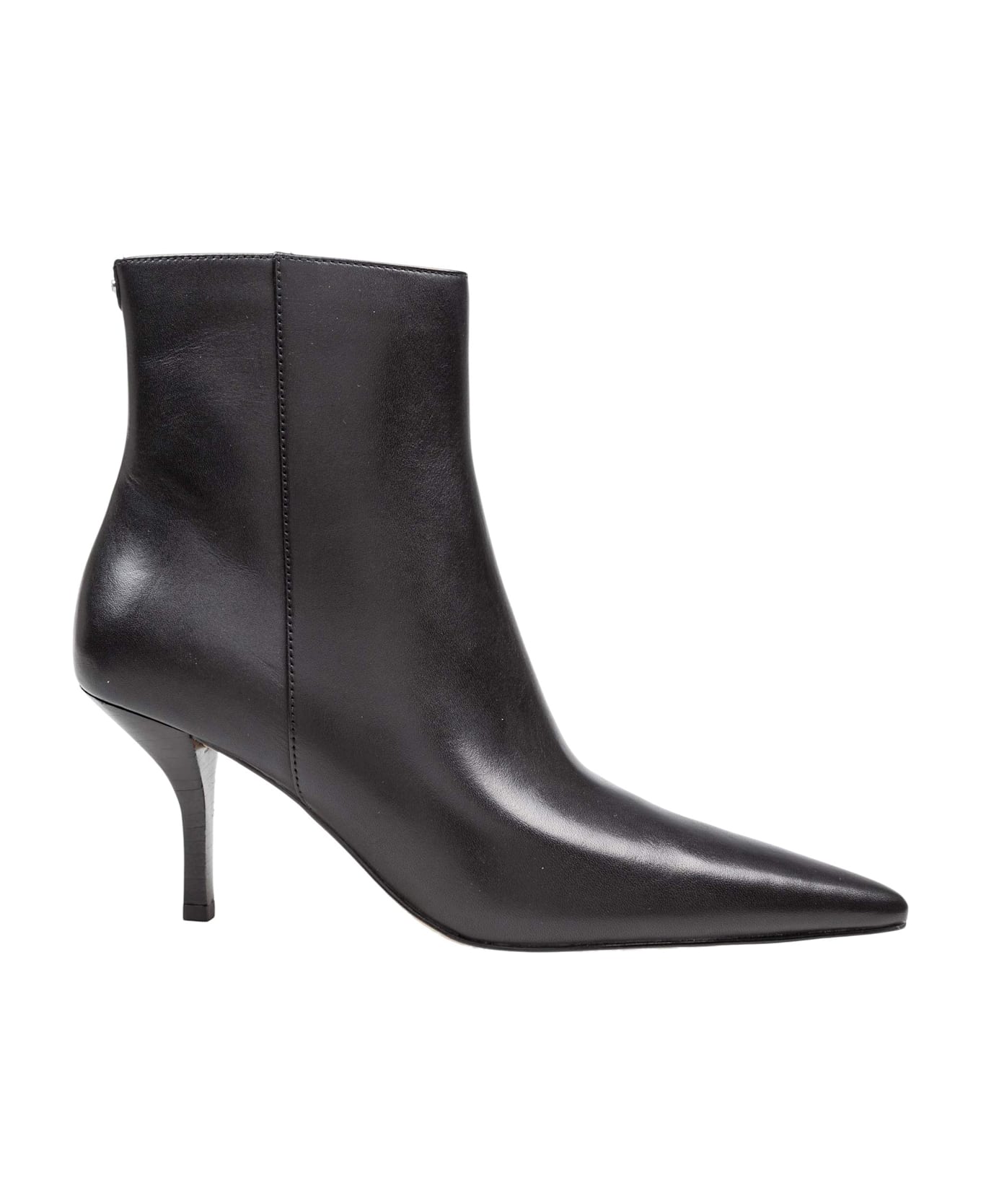 Leather ankle boot black pointed toe side zipper polyester lining rubber sole zip closure heel height: 7. 6 cm heel type: stacked outer material: leather made in vietnam